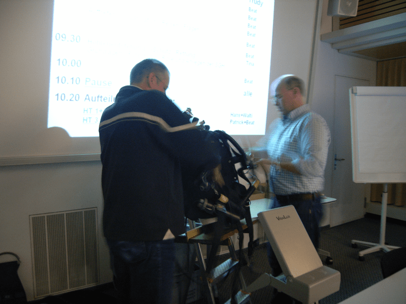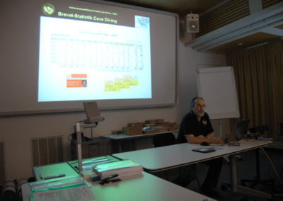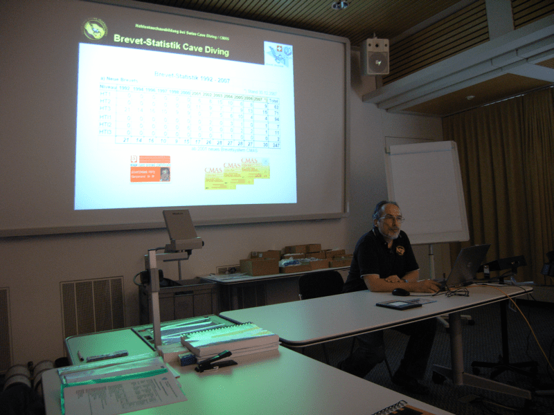 Anschliessend wurde dann getrennt in 2 Gruppen (HT1+2, resp. HT3) in den folgenden 4 Theorieblöcken à je 1.5 bis 2 Stunden die wichtigsten theoretischen Grundlagen für das sichere Höhlentauchen zusammen erarbeitet.