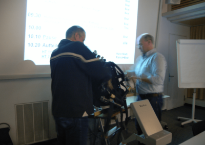 Den Teilnehmern wurde praxisnah anhand des reichlich ausgestellten Materials gezeigt, was in Sachen Equipment und Konfiguration alles erwartet und verlangt wird.