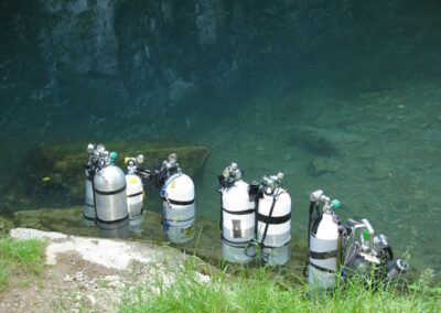 Auch die Höhlen selber zeigten sich von der eher angenehmen Seite, so hatten wir meist gute Sicht- und Strömungsverhältnisse. Und war die Sicht mal etwas eingetrübt, konnte man den TG zumindest als „low visibility training dive“ eintragen….
