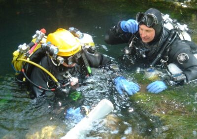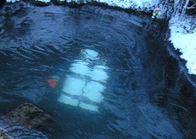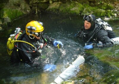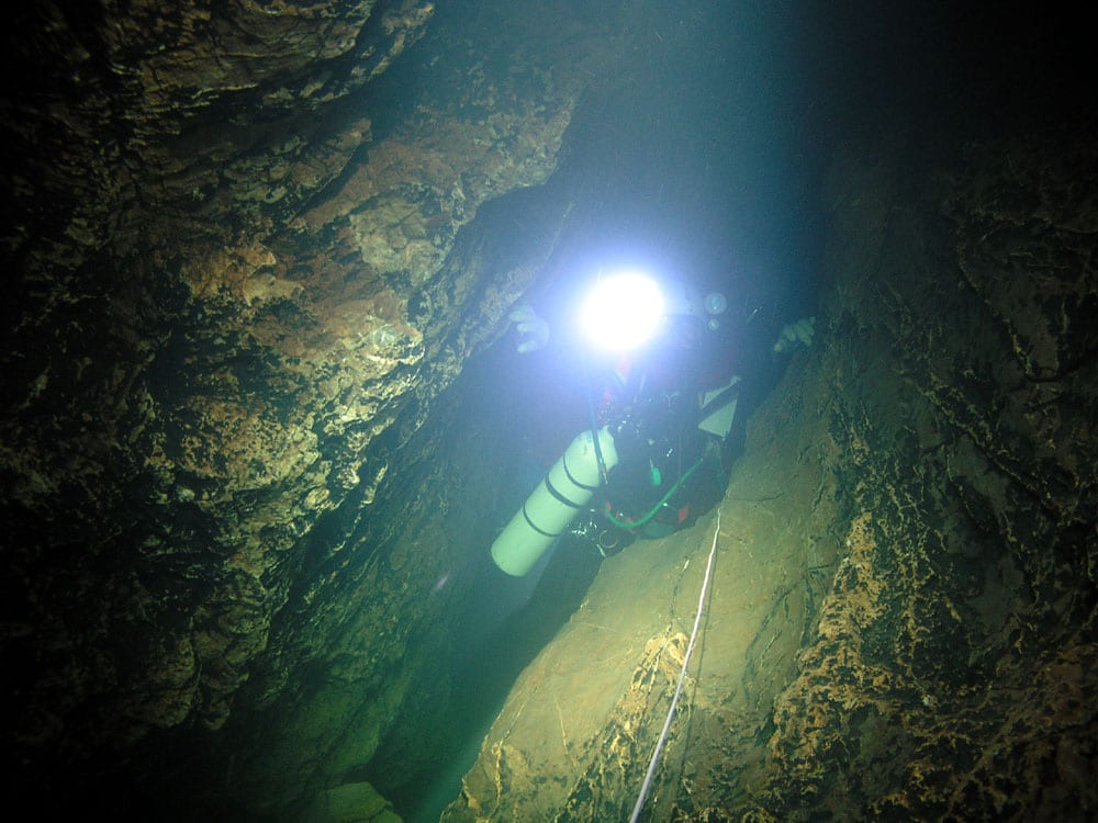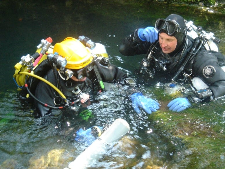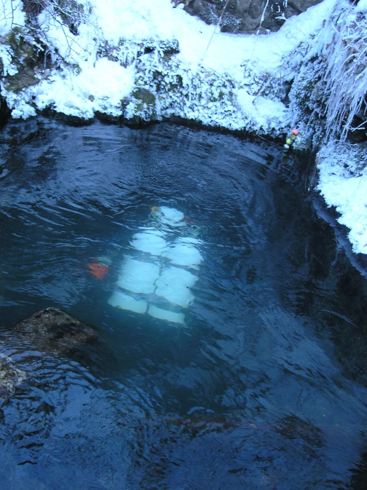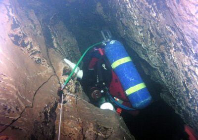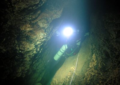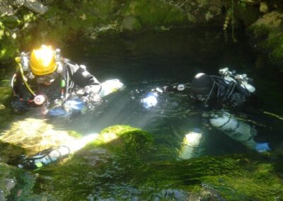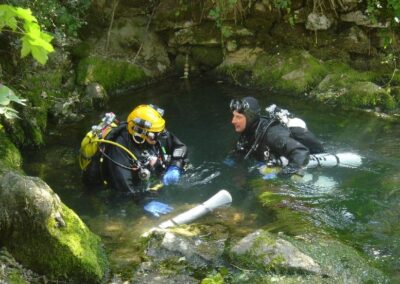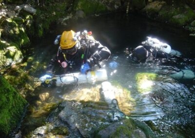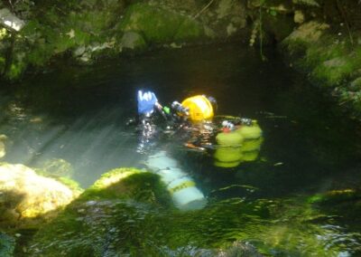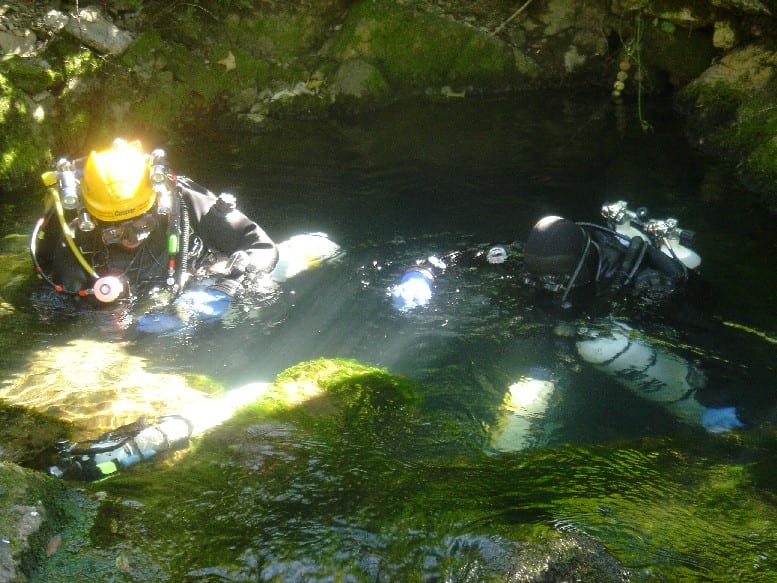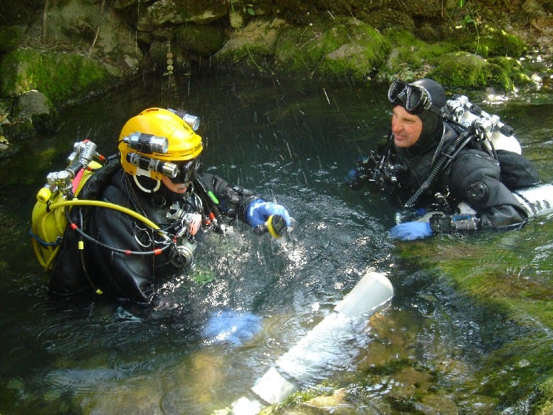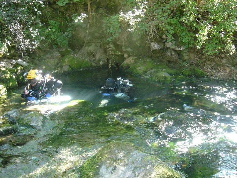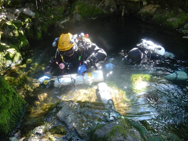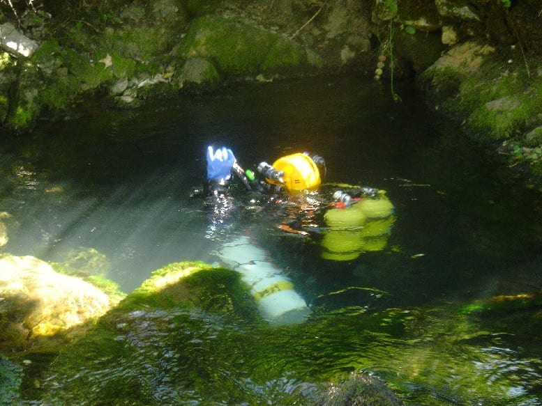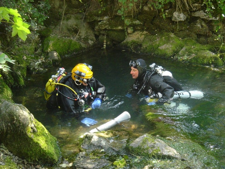 The GEC, made of 13 cave divers, is working on the survey and the exploration of the Chaudanne.