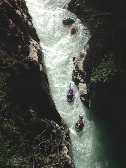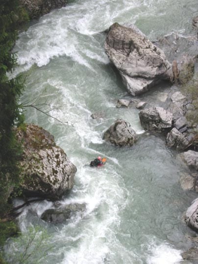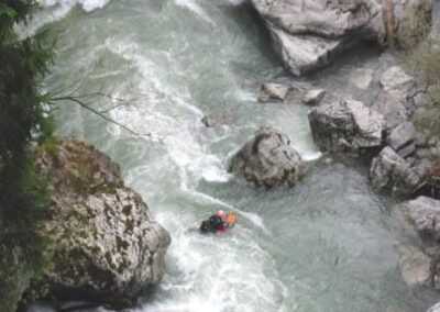 Um es gleich vorweg zu nehmen: die Chaudanne ist eine HT3 Höhle wie es im Buche steht, und das erst noch für erfahrene HT3! Wenn sie auch einen langen Teil im 20/30m Bereich hat, so gibt es doch gleich beim Eingang 2 Kamine mit 1-Mann Durchlass, man muss mit erheblicher Perkolation und entsprechender Sichtverschlechterung beim Rückweg rechnen und auch sonst gibt es mehrere Passagen, die man als „Restriction“ bezeichnen muss.