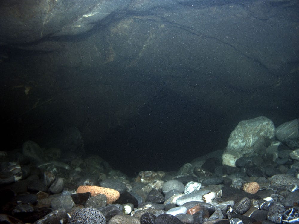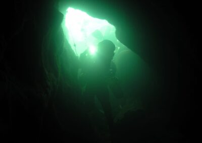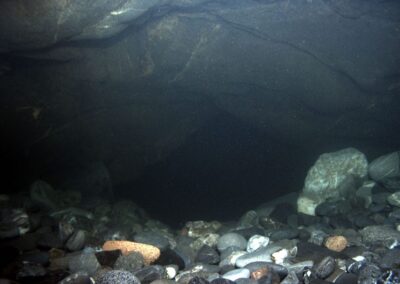 Im Innern hatte es – wie oben erwähnt – auf dem Rückweg ziemlich Perkolation (eigentlich erstaunlich, da sie doch des Öfteren betaucht wird). Vom Boden kann’s jedenfalls nicht gewesen sein, da ist meistens ja nur blanker Stein.