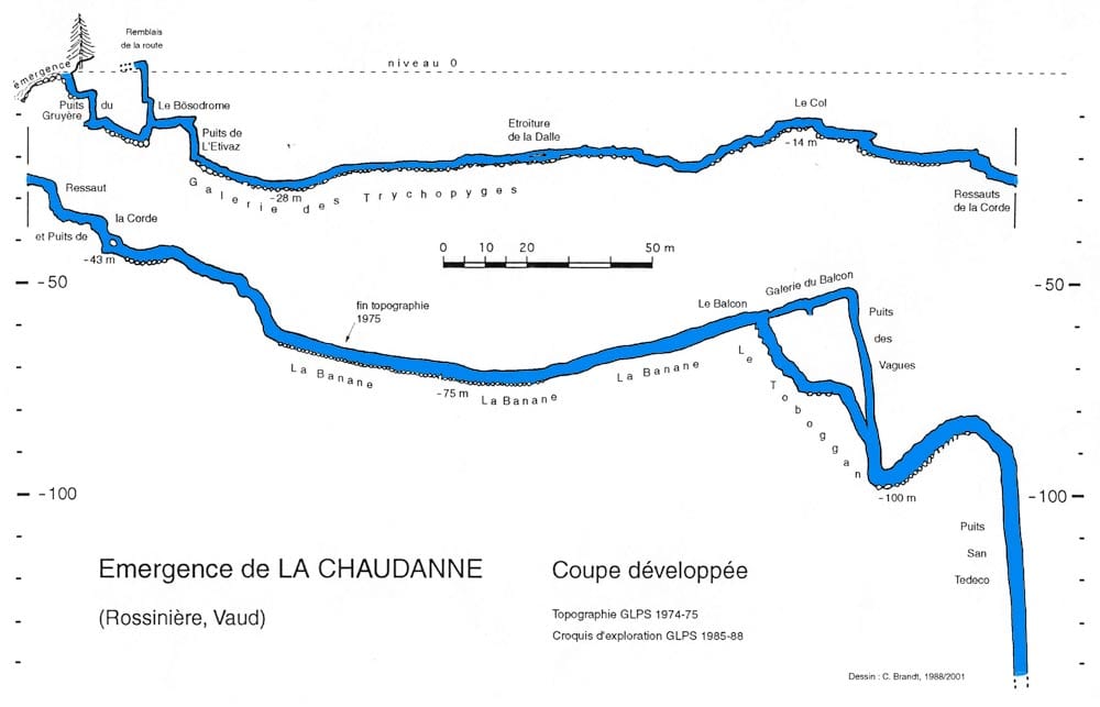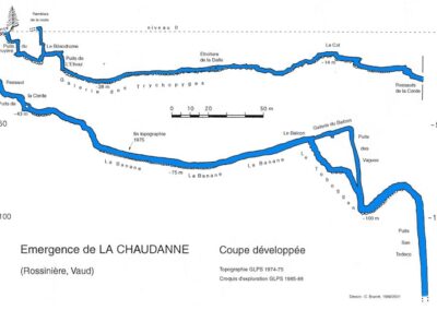 The Chaudanne spring, or cave, is located in Switzerland, in the „Vaudoise“ Alps, near the town of Rossinière. Its survey started in the 60s.