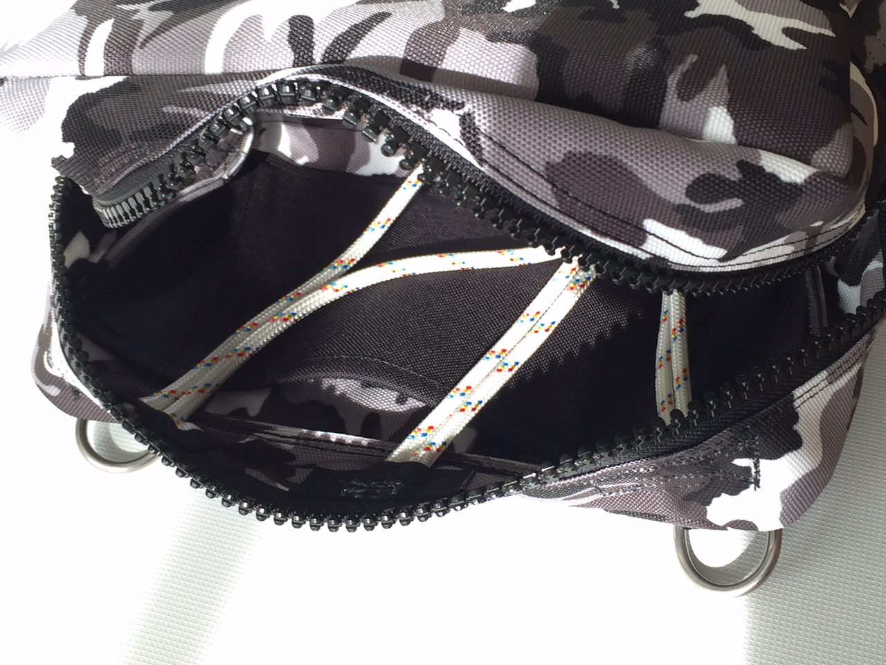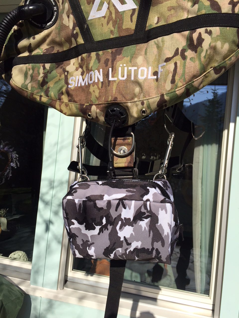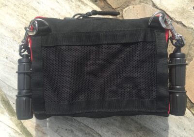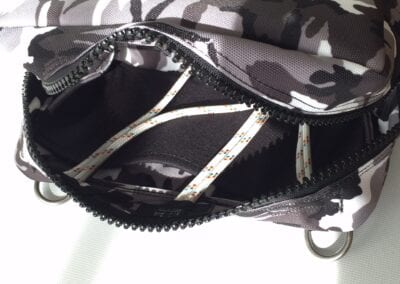 Die Basisversion hat eine Innentasche für Wetnotes und drei Schlaufen innen, um Material (Spools, Schneidwerkzeug, Maske, …) daran zu befestigen.