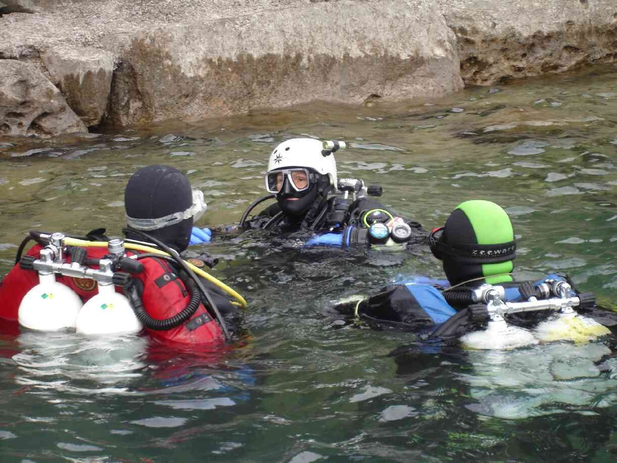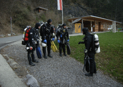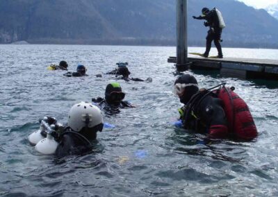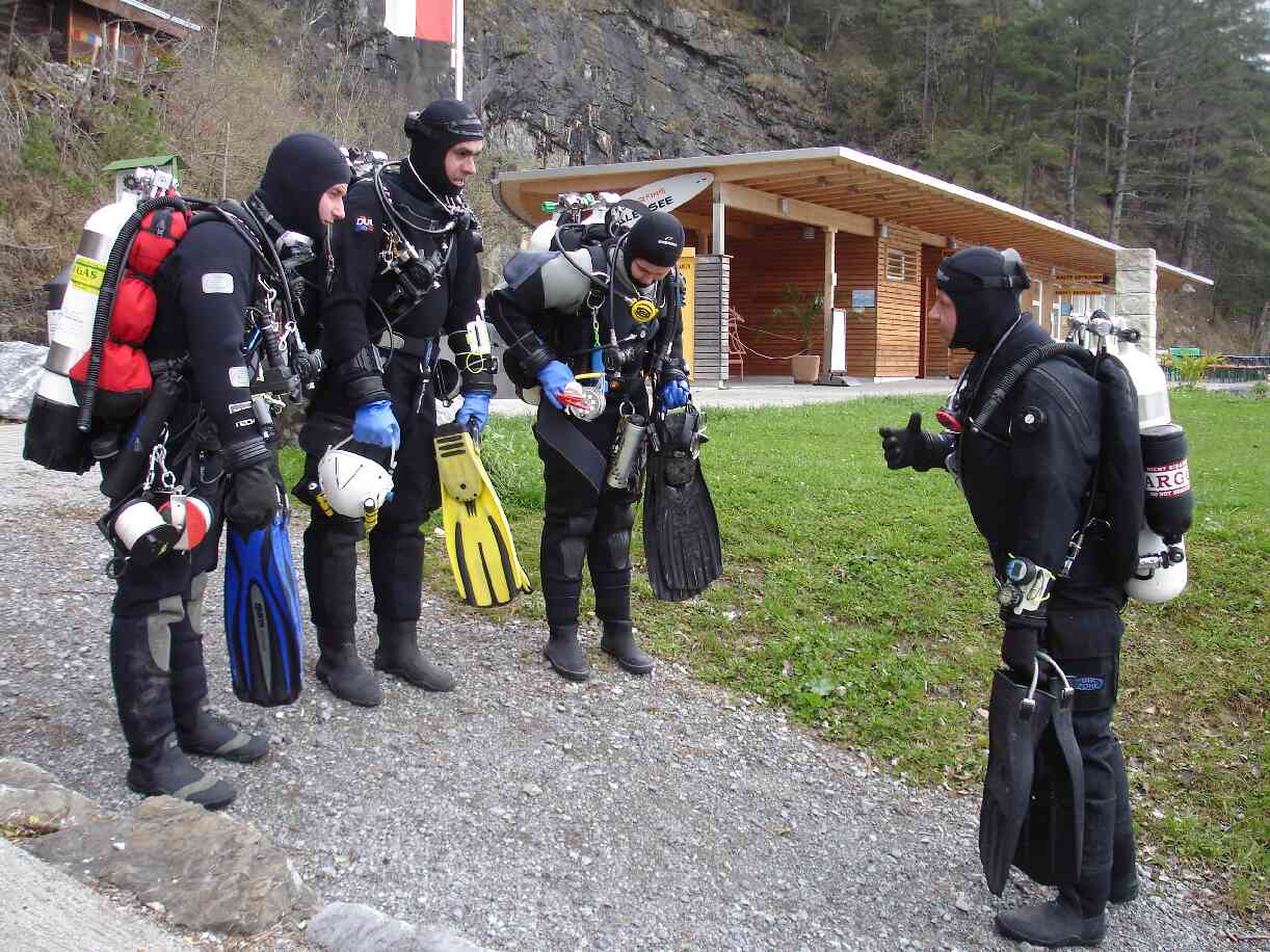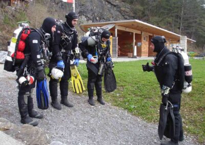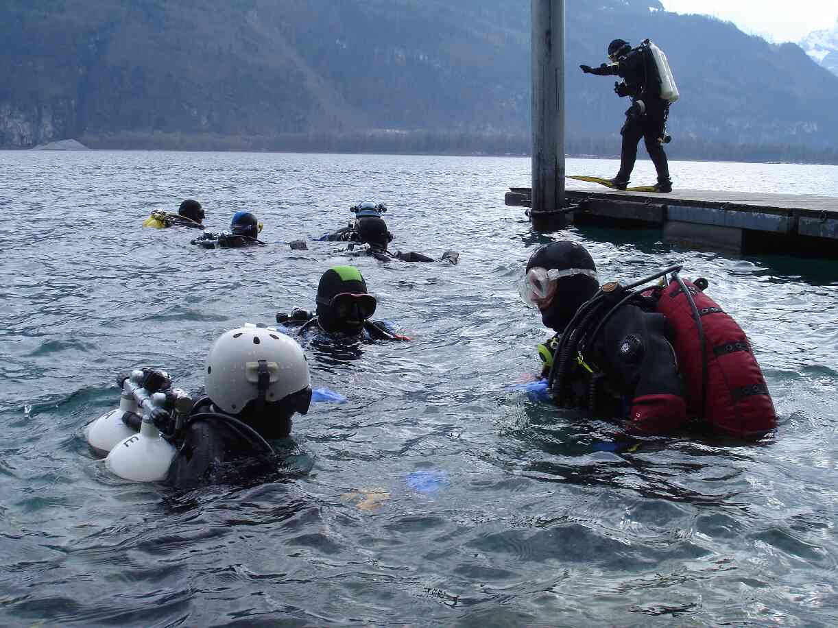 Nach einem 1-tägigen Theorieblock wird jeweils ca. 3-4 Wochen danach ein Einführungswochenende in der Schweiz durchgeführt, zuerst im See, dann im Cavern-Bereich einer Höhle.