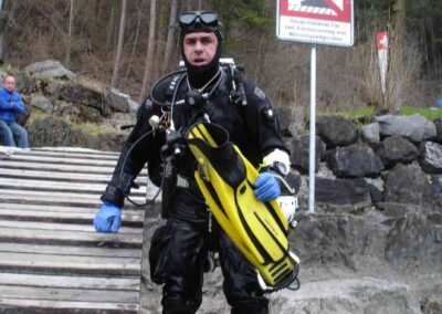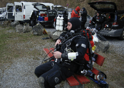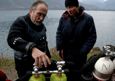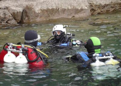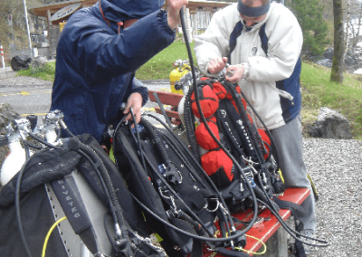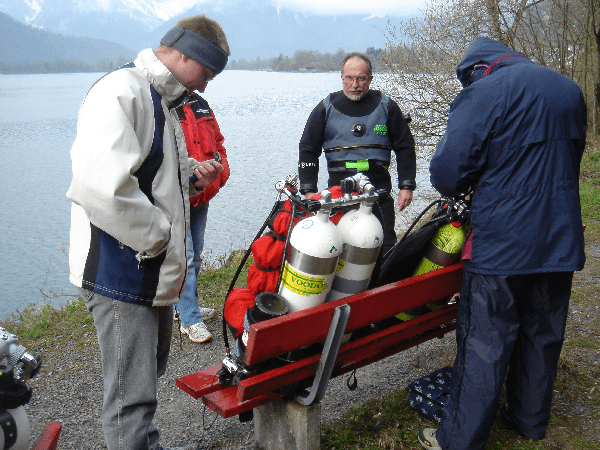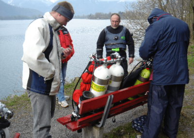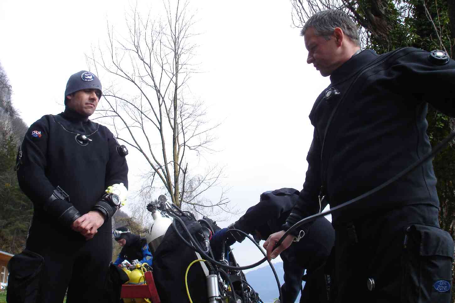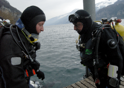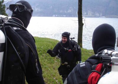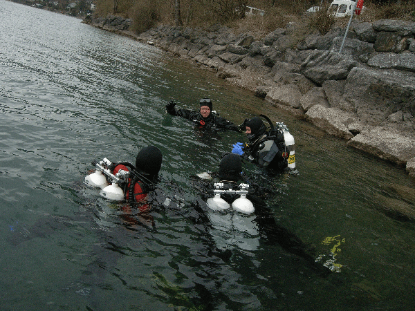 Nach einem 1-tägigen Theorieblock wird jeweils ca. 3-4 Wochen danach ein Einführungswochenende in der Schweiz durchgeführt, zuerst im See, dann im Cavern-Bereich einer Höhle.