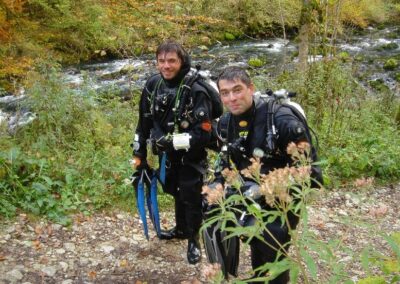Weitere Tauchgäste waren Yoska und Klaudio, die ausgiebig in der Source de l’Ain herumtobten….
