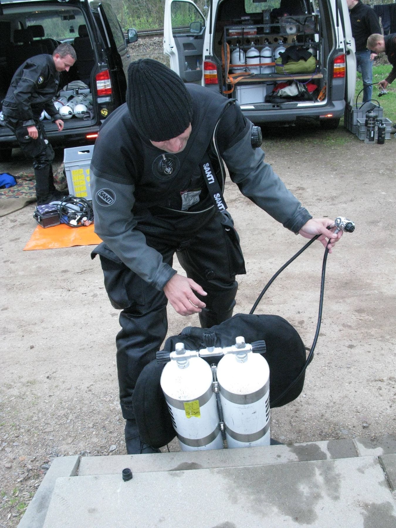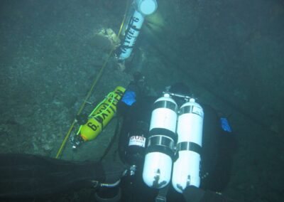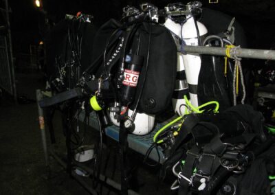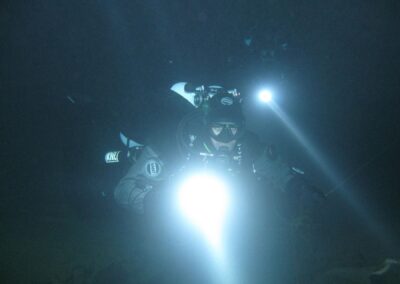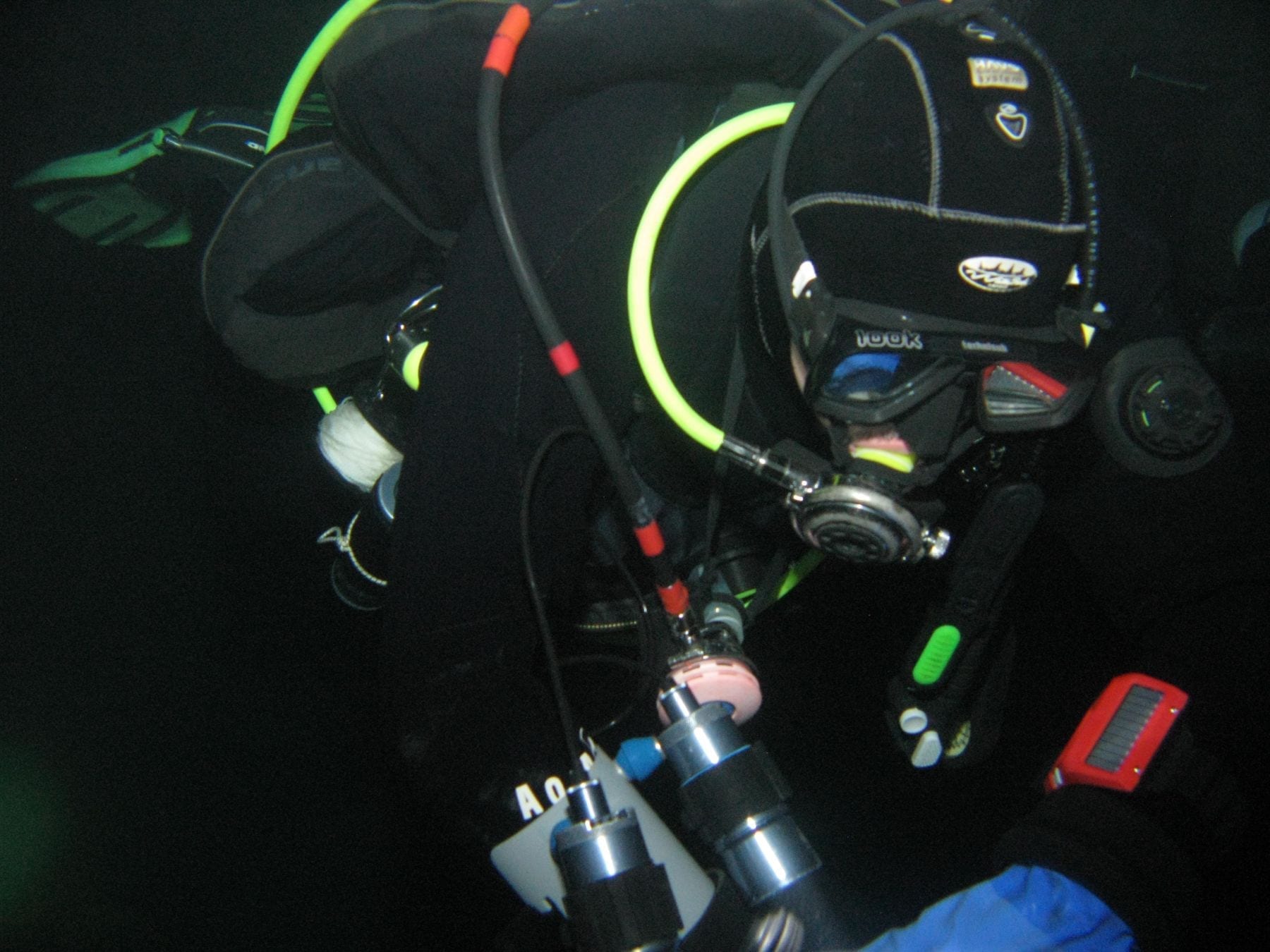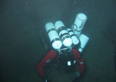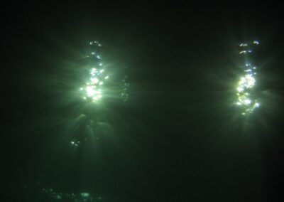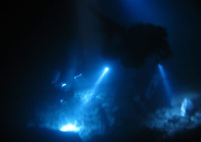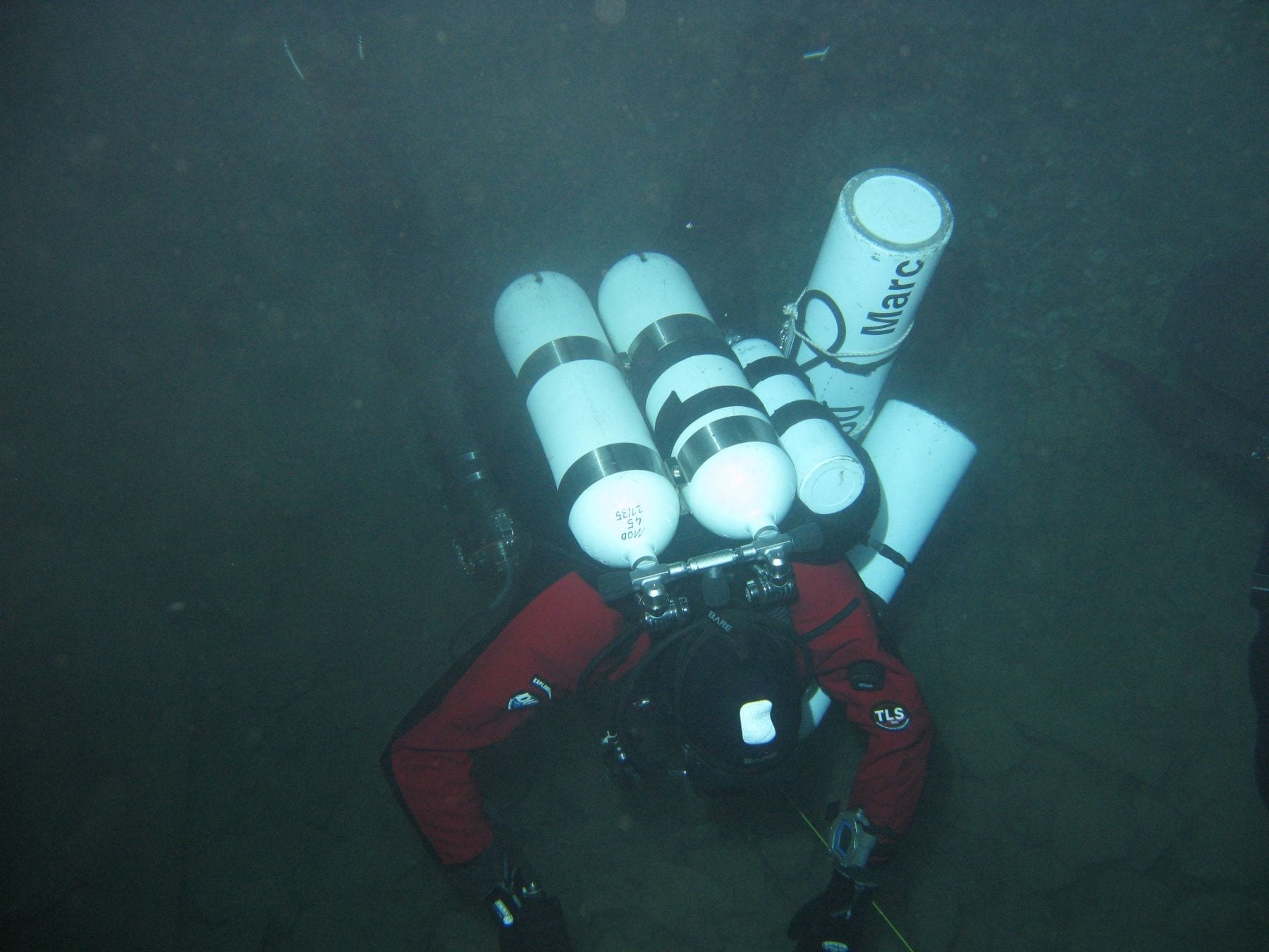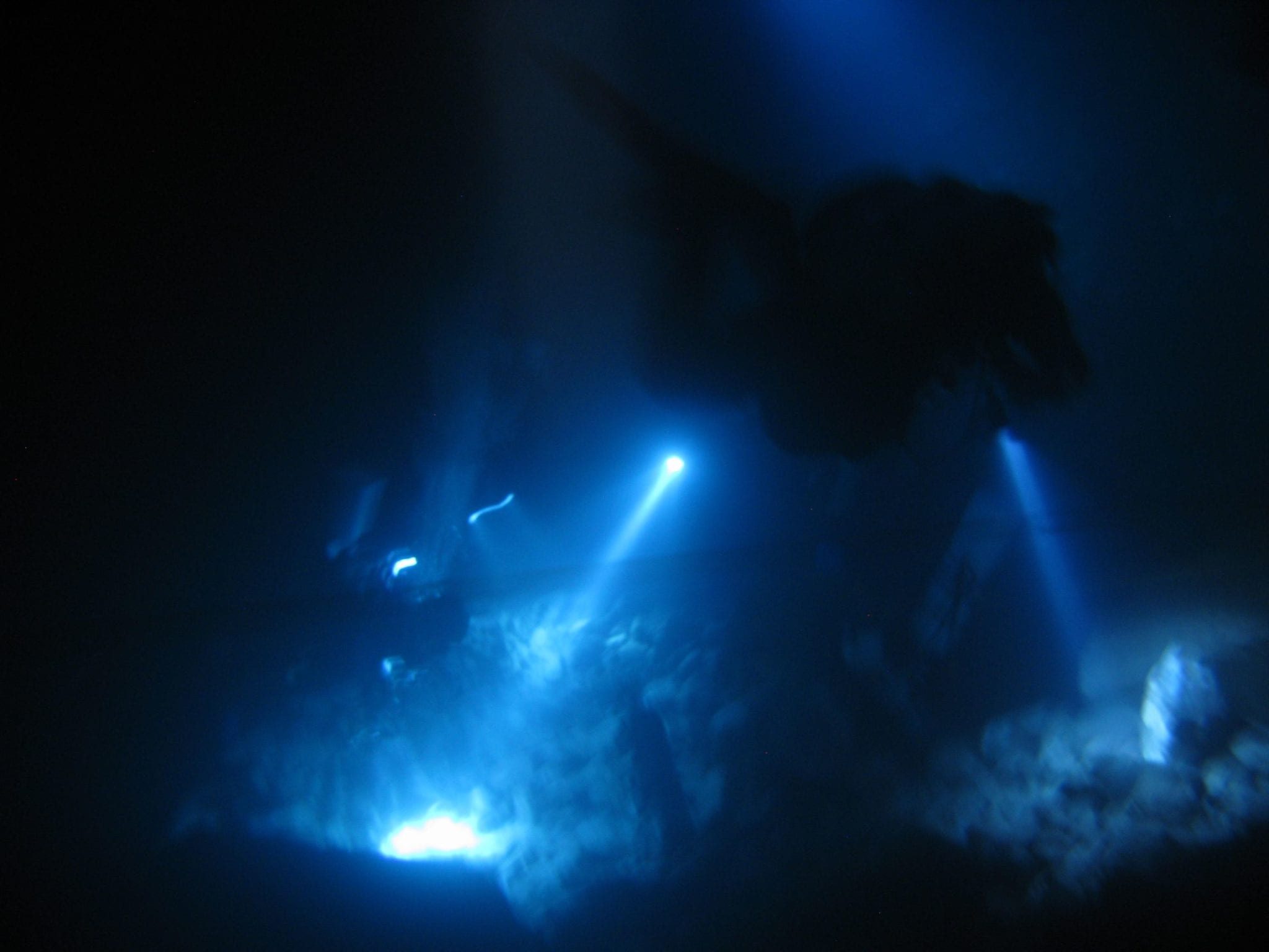 Es herrschte sehr viel Betrieb. Bei diversen Tauchern hatte man den Eindruck, dass die Fähigkeit, möglichst viele Stage Flaschen anzuhängen, grösser ist, als das Tarieren…wenn man sich die Schlammlawine anschaute, die diese Leute wie einen Brautschleier hinter sich herzogen. So erlebten wir denn auch im Flachbereich einen regelrechten Silt-out