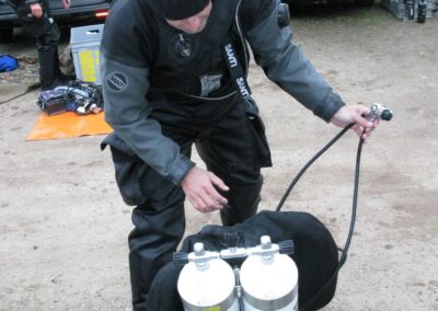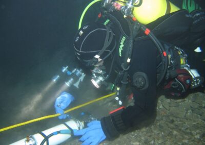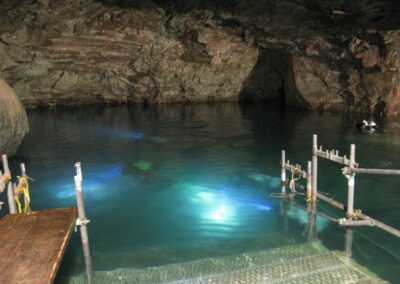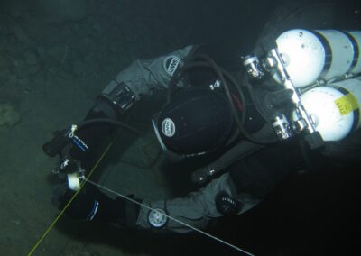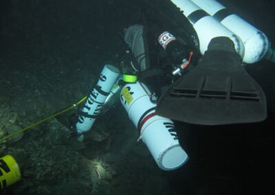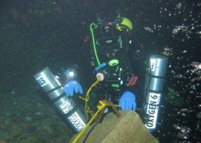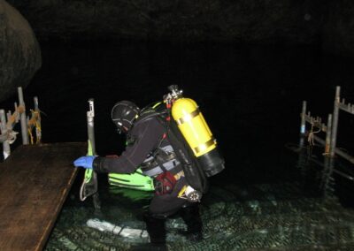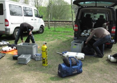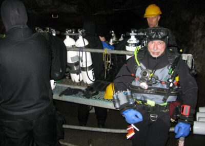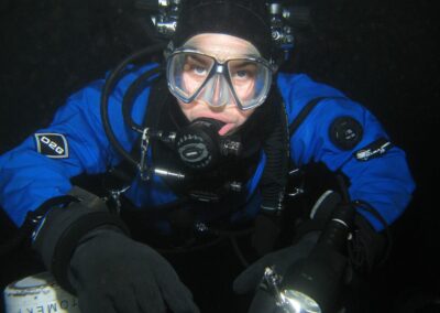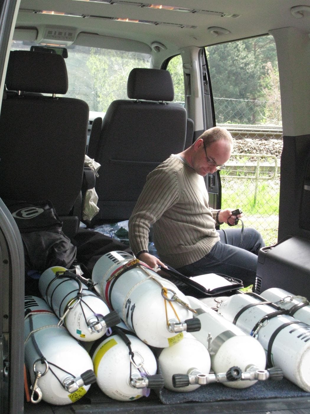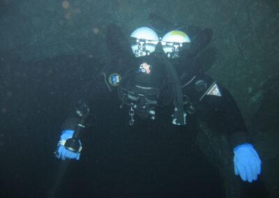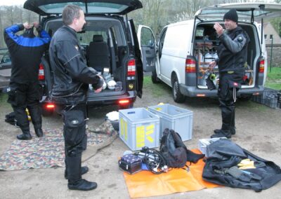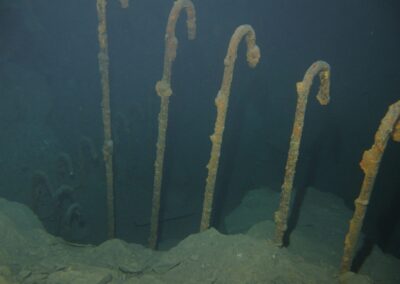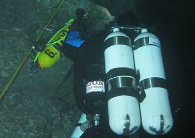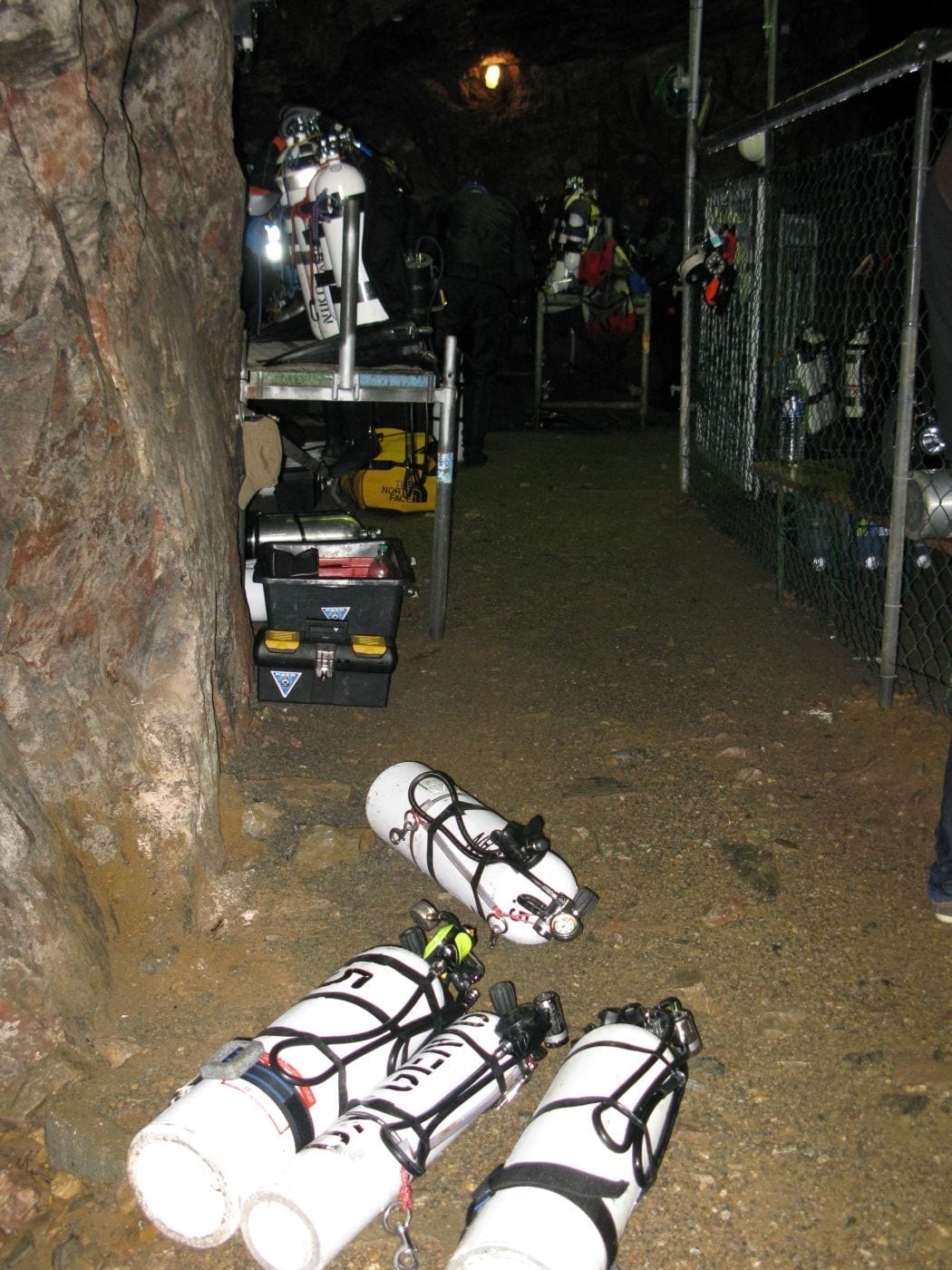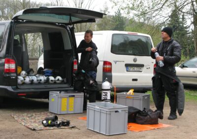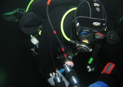 Es herrschte sehr viel Betrieb. Bei diversen Tauchern hatte man den Eindruck, dass die Fähigkeit, möglichst viele Stage Flaschen anzuhängen, grösser ist, als das Tarieren…wenn man sich die Schlammlawine anschaute, die diese Leute wie einen Brautschleier hinter sich herzogen. So erlebten wir denn auch im Flachbereich einen regelrechten Silt-out