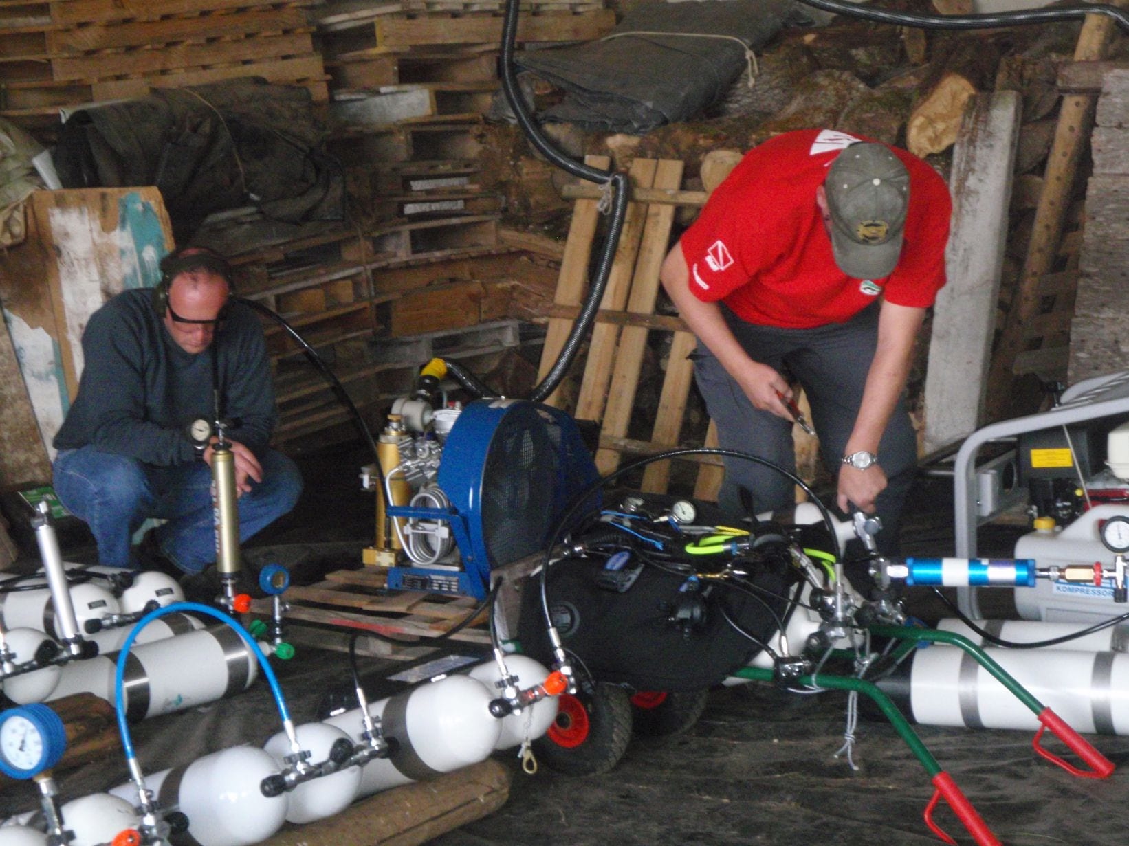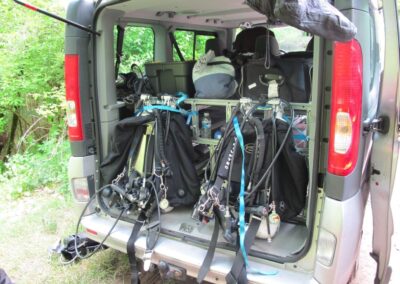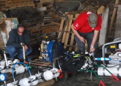 Auch die Höhlen selber zeigten sich von der guten Seite, so hatten wir meist gute Sicht- und Strömungsverhältnisse. Dieses Jahr sorgten 4 Bauer Capitanos mit 140-160 l/min und einmal mehr der mega-Mariner mit 320 l/min von Philippe für den notwendigen Druck in den vielen Flaschen…..“…happy filling…“ konnte man da sagen.