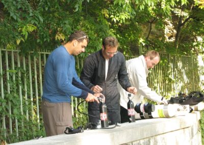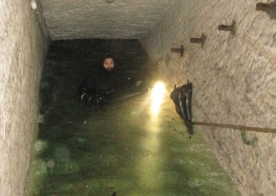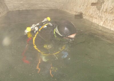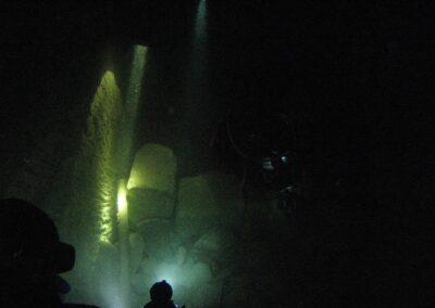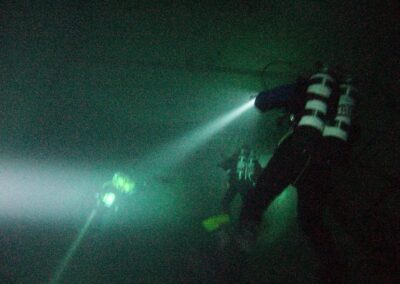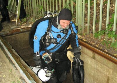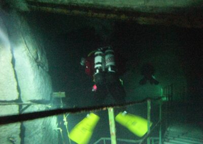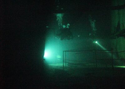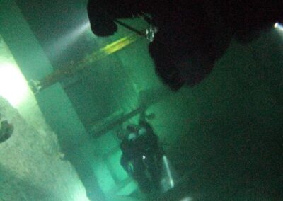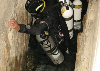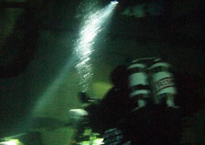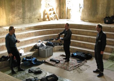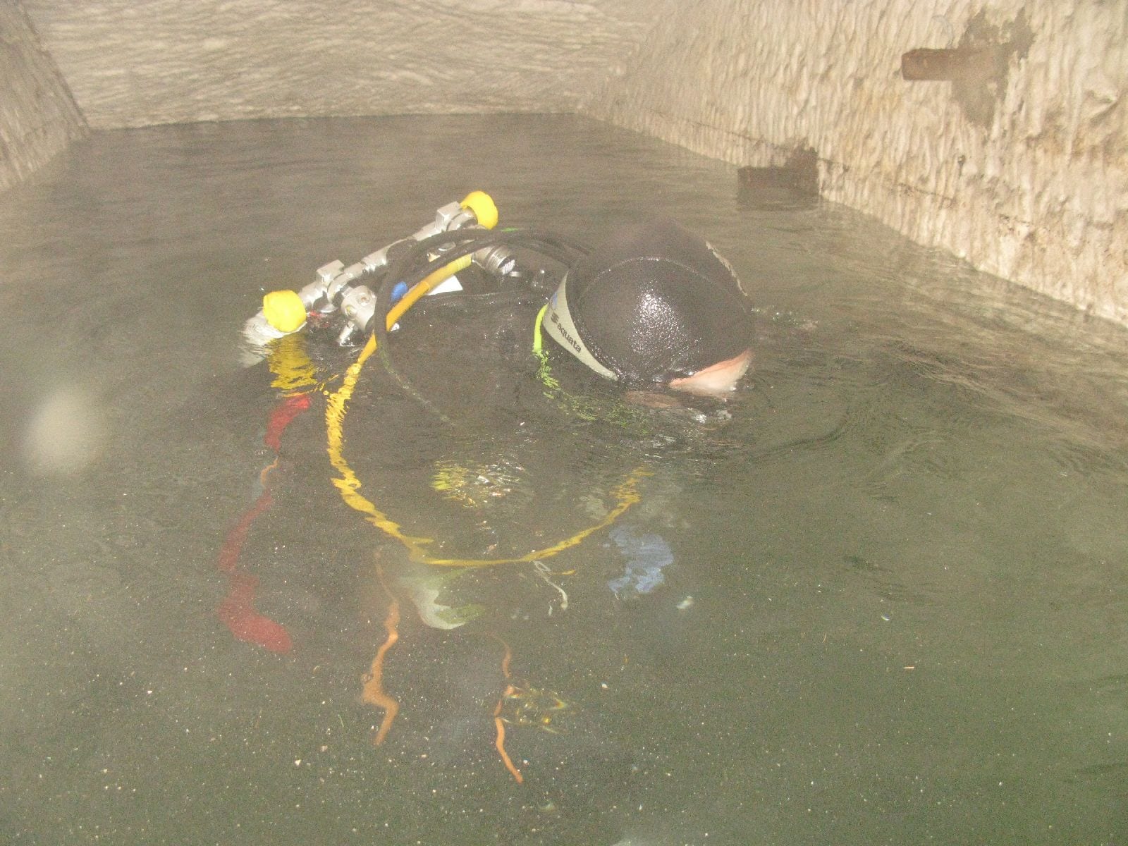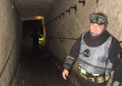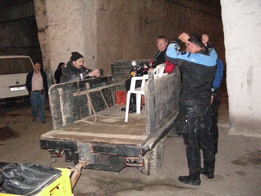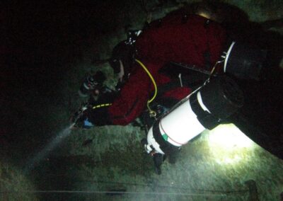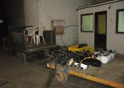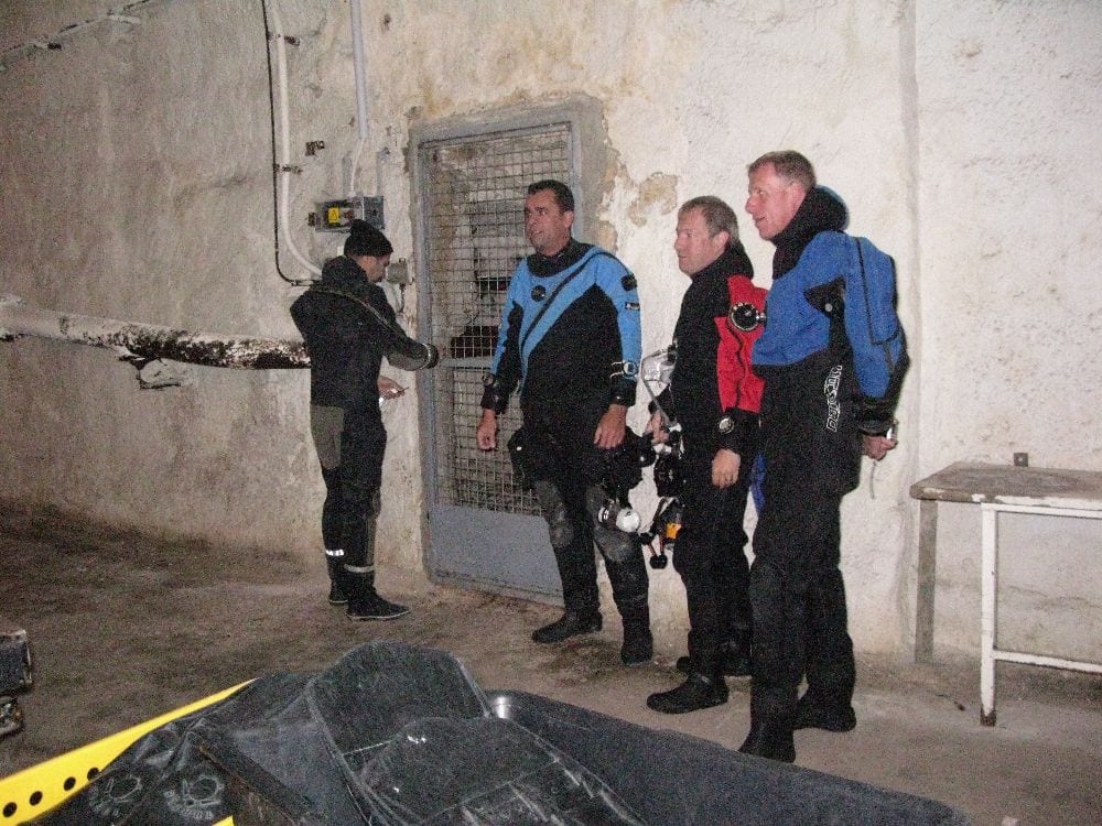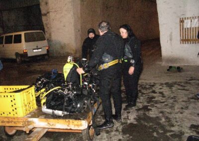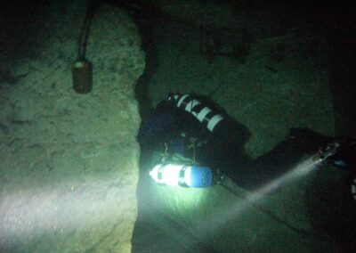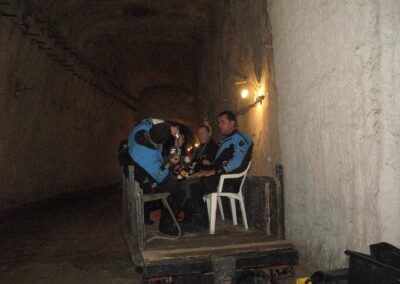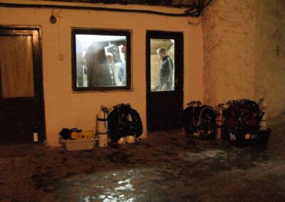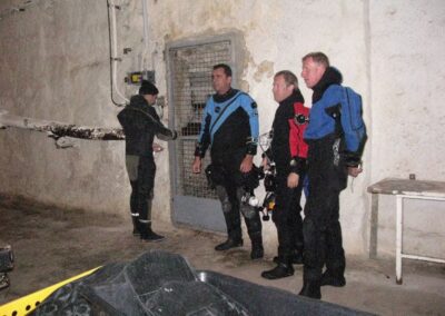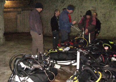 Am Samstag ging’s dann in den 10. Bezirk der 1.8 Mio Stadt in ein seit dem 2. WK stillgelegten Kalkbergwerk (dort wurden Kalkplatten für Häuserfassaden herausgebrochen). Pro Gruppe wurden jeweils 2 TGs an verschiedenen Stellen durchgeführt. Sicht sehr gut (zu beginn). Beim Hinaustauchen konnte man dann sehr praxisnah erleben, was Perkolation in der Höhle bedeutet. TG Dauer jeweils zw. 40 und 45 Minuten, Wassertemperatur zw. 10 und 12 Grad.