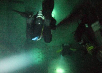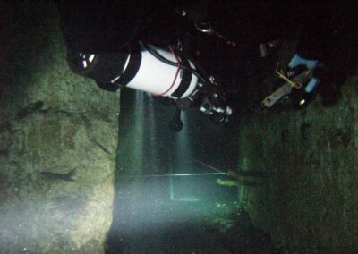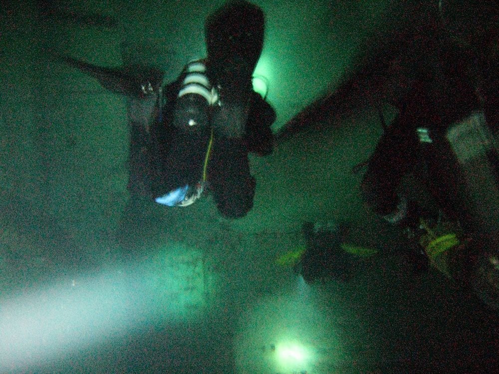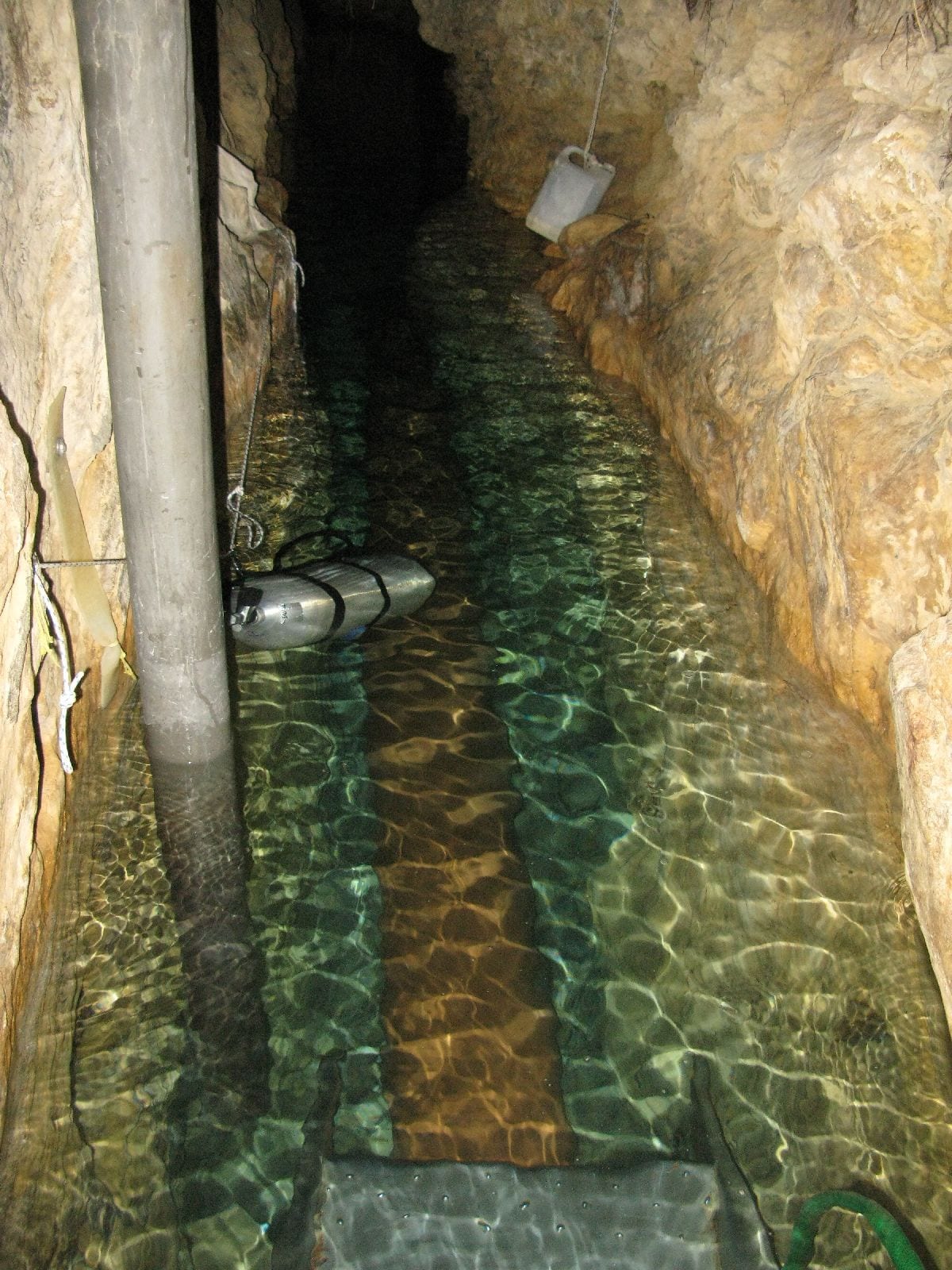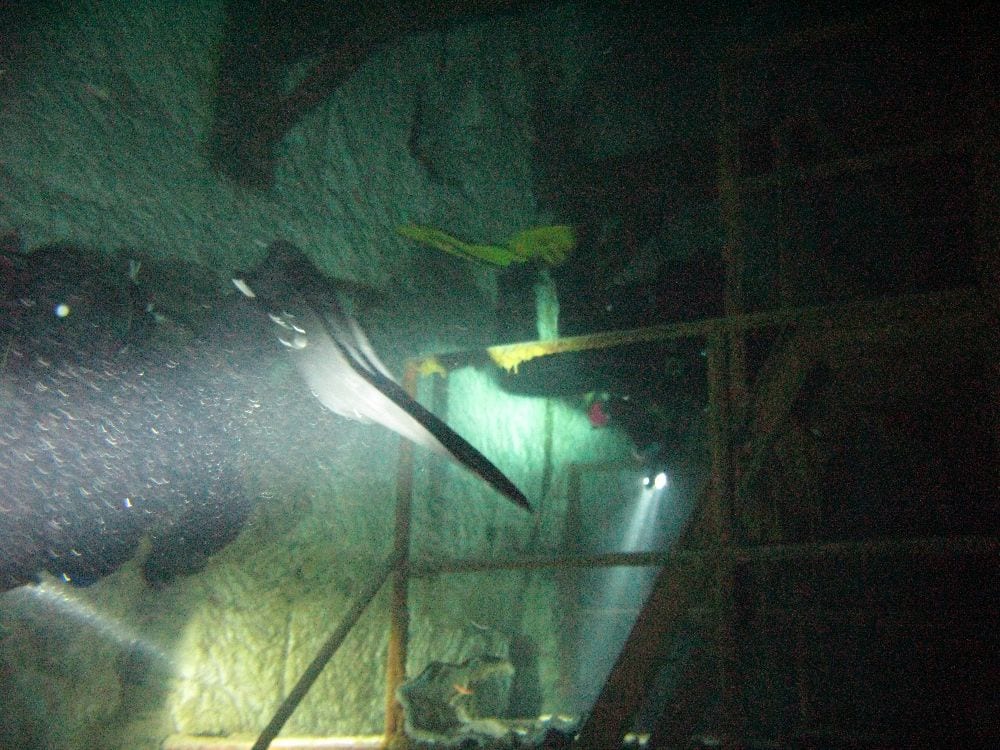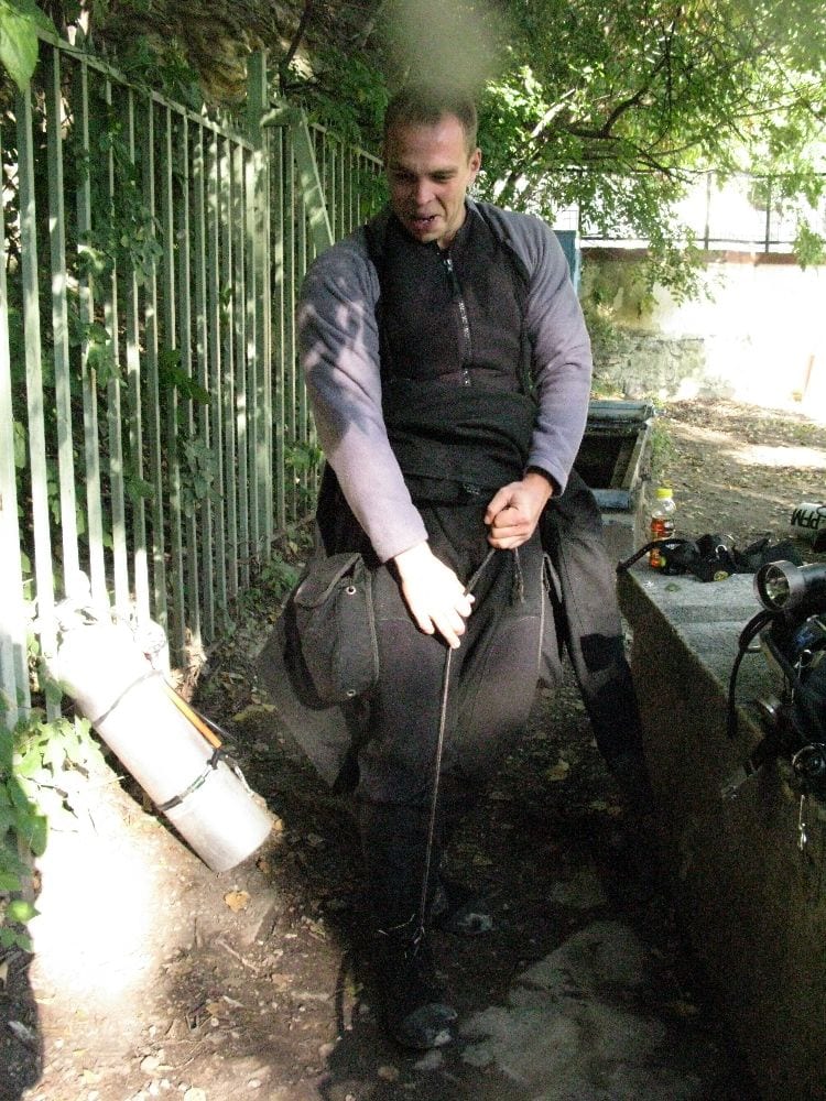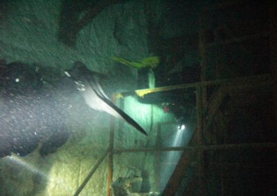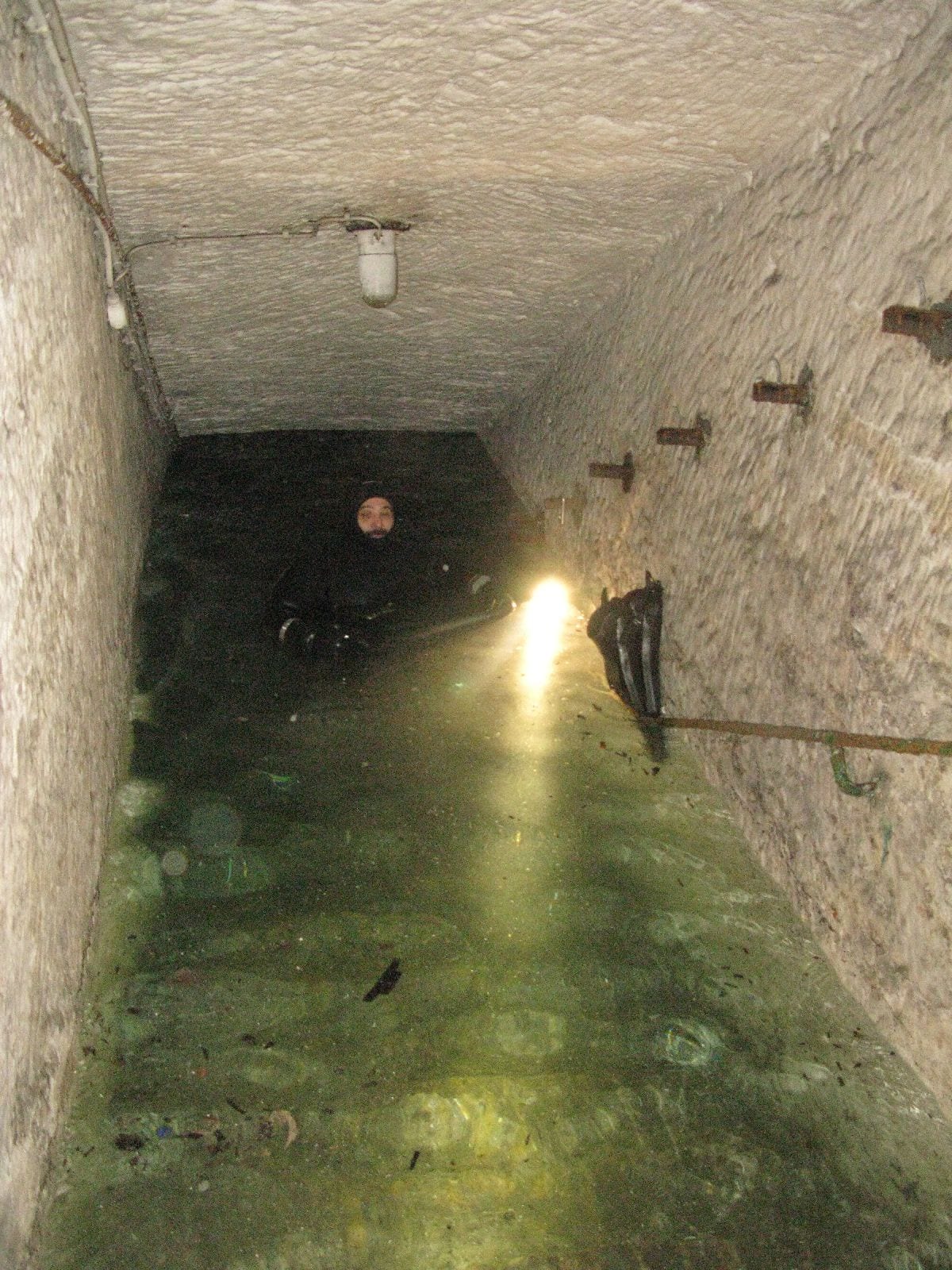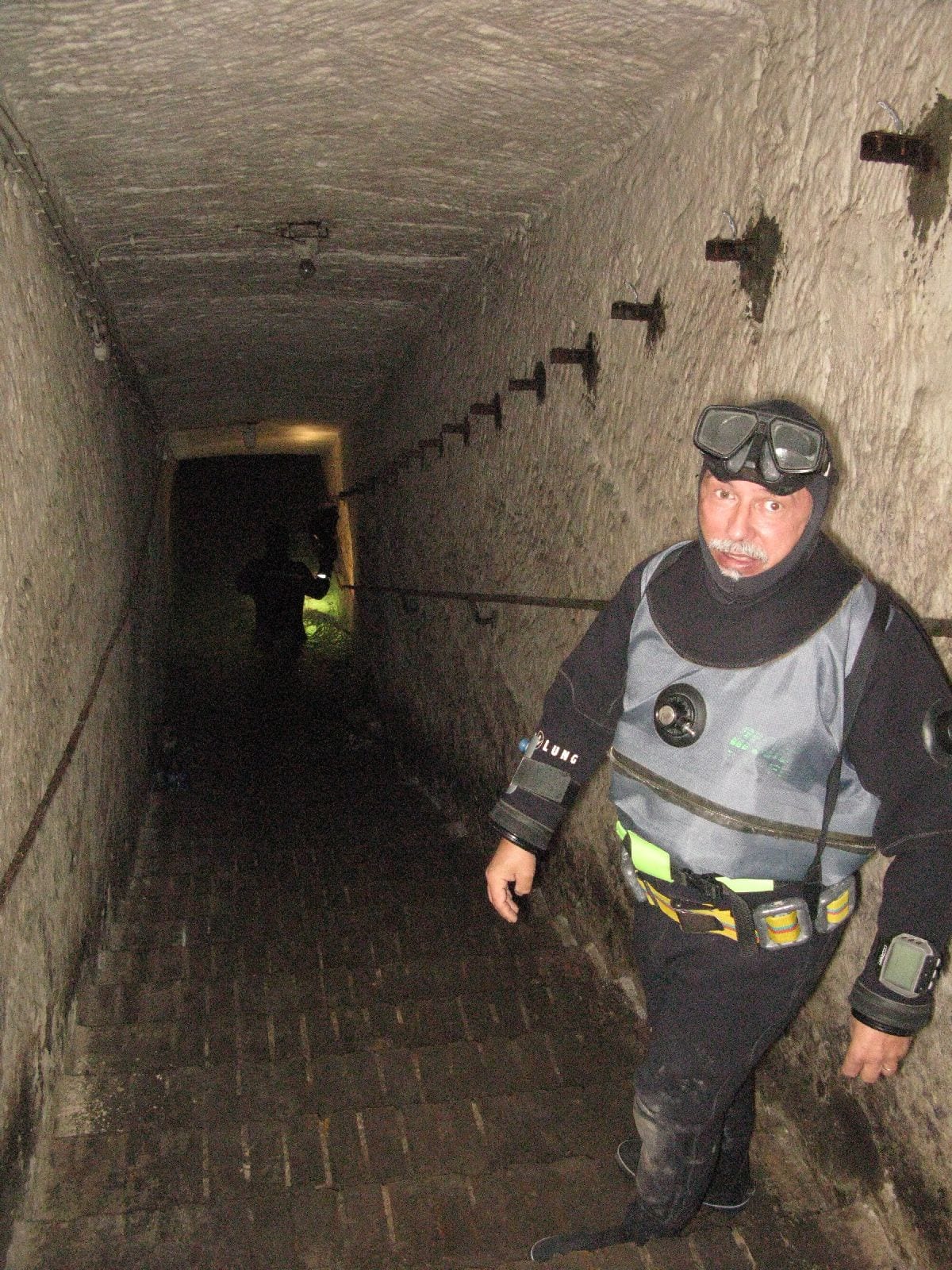 Am Samstag ging’s dann in den 10. Bezirk der 1.8 Mio Stadt in ein seit dem 2. WK stillgelegten Kalkbergwerk (dort wurden Kalkplatten für Häuserfassaden herausgebrochen). Pro Gruppe wurden jeweils 2 TGs an verschiedenen Stellen durchgeführt. Sicht sehr gut (zu beginn). Beim Hinaustauchen konnte man dann sehr praxisnah erleben, was Perkolation in der Höhle bedeutet. TG Dauer jeweils zw. 40 und 45 Minuten, Wassertemperatur zw. 10 und 12 Grad.