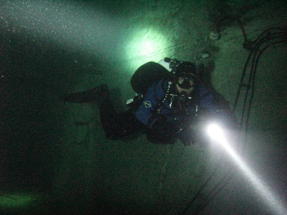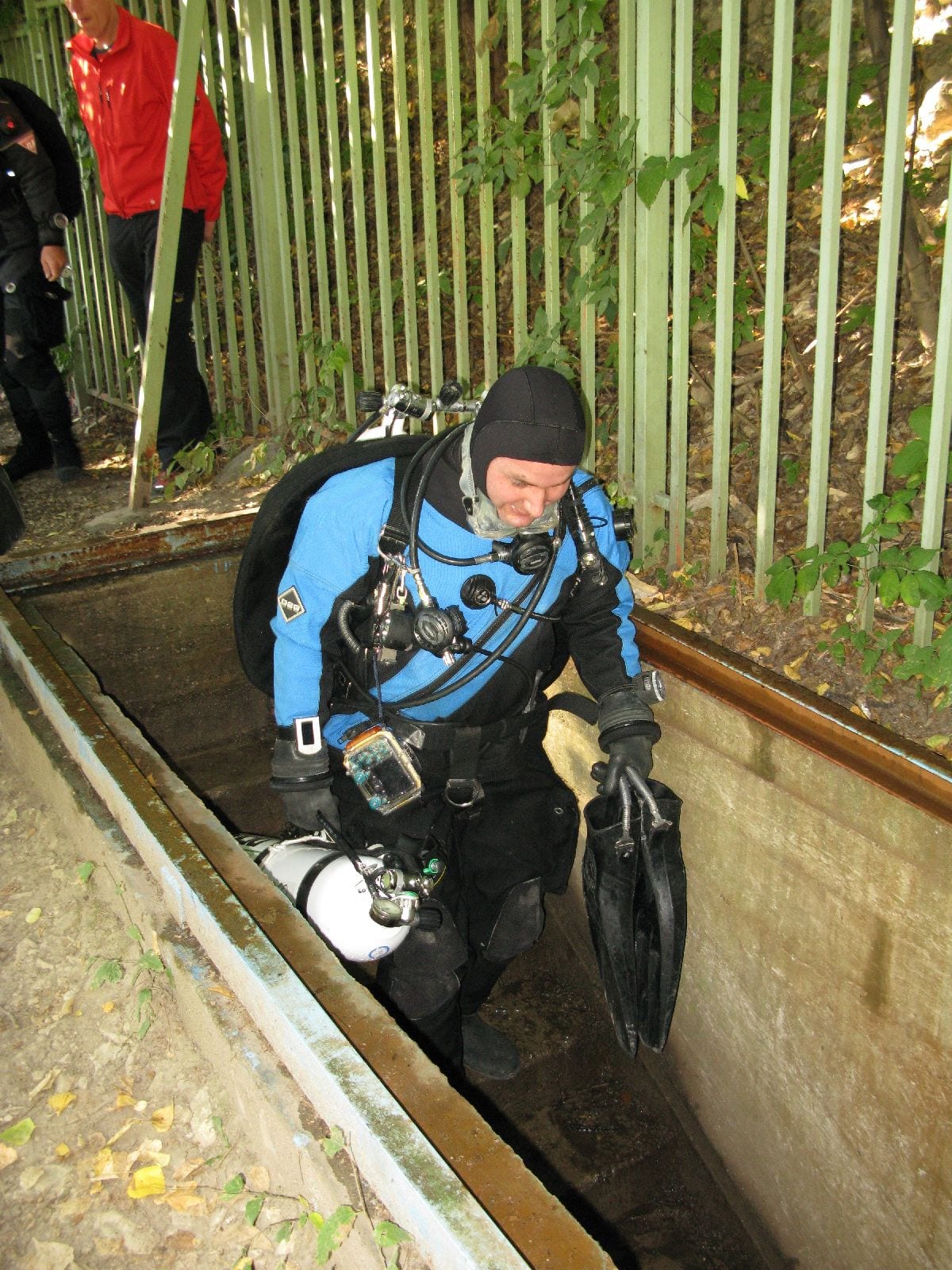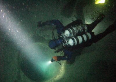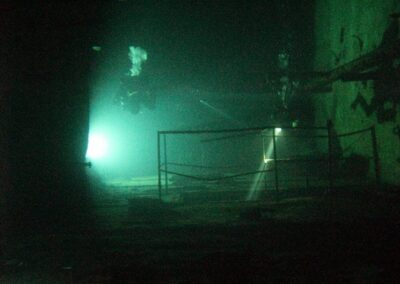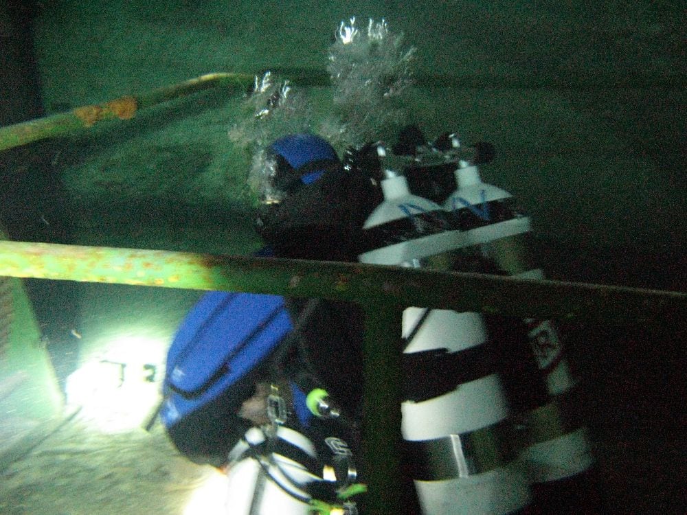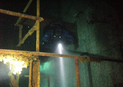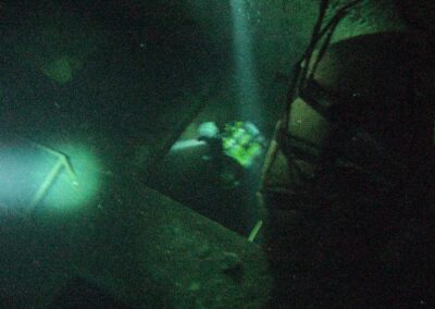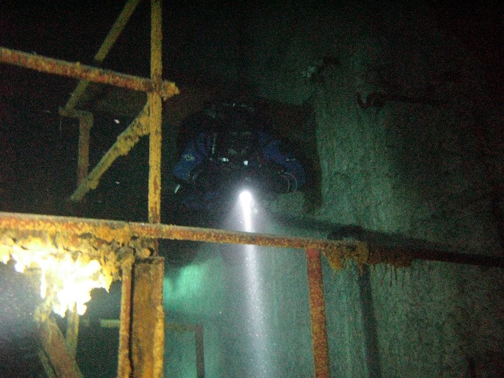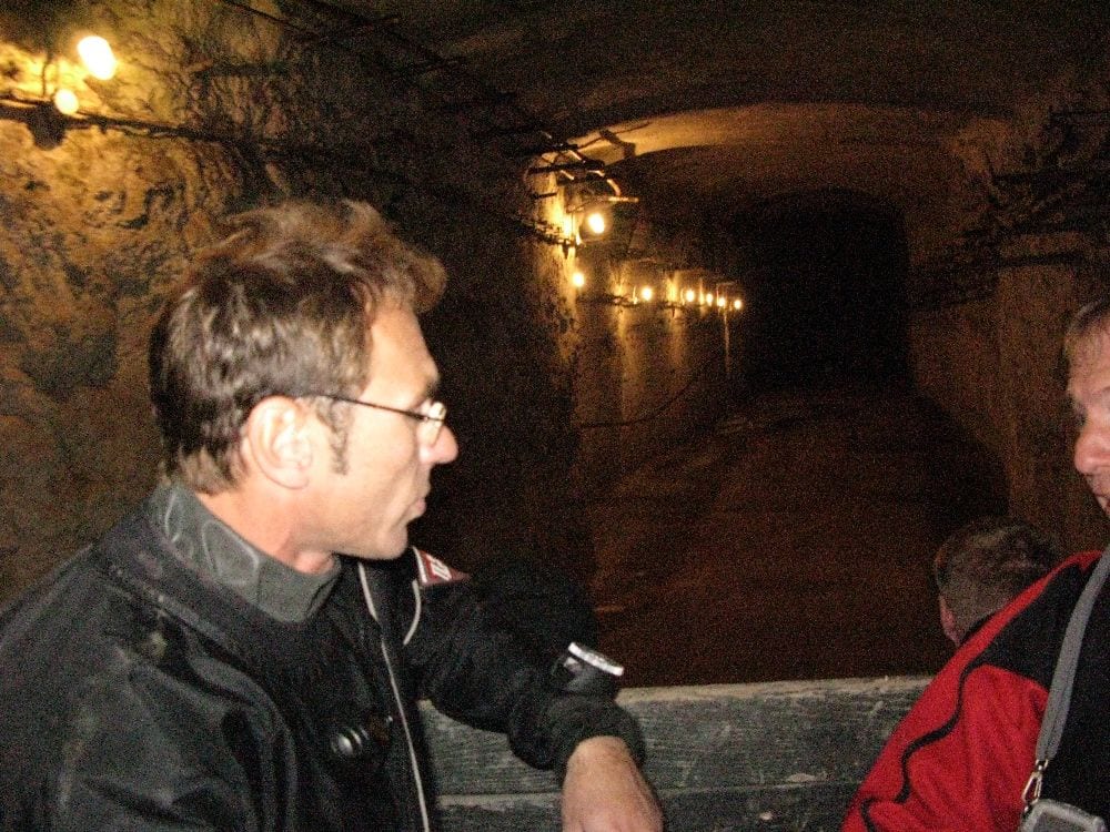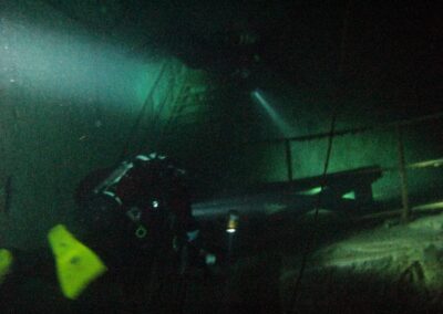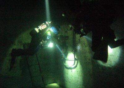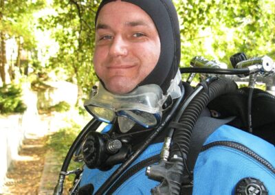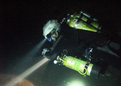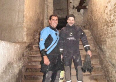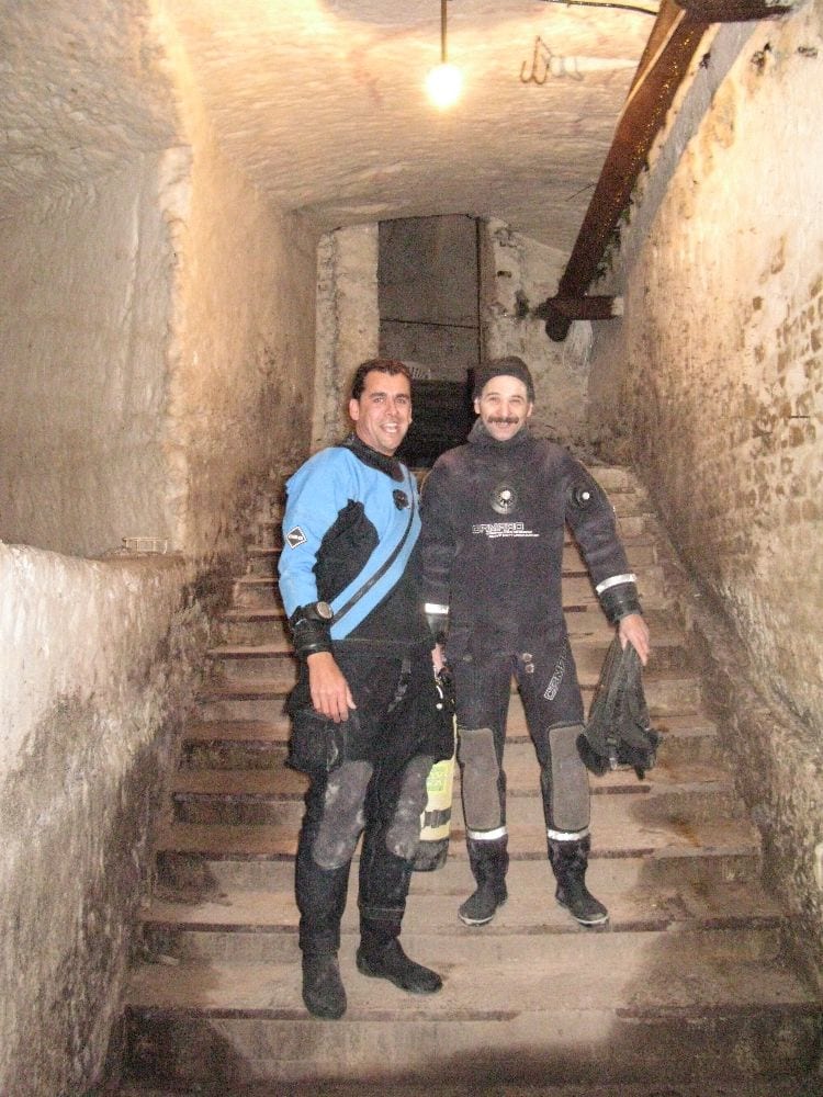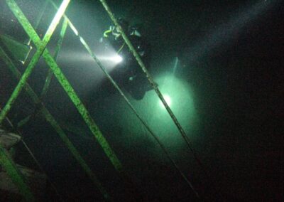 Am Samstag ging’s dann in den 10. Bezirk der 1.8 Mio Stadt in ein seit dem 2. WK stillgelegten Kalkbergwerk (dort wurden Kalkplatten für Häuserfassaden herausgebrochen). Pro Gruppe wurden jeweils 2 TGs an verschiedenen Stellen durchgeführt. Sicht sehr gut (zu beginn). Beim Hinaustauchen konnte man dann sehr praxisnah erleben, was Perkolation in der Höhle bedeutet. TG Dauer jeweils zw. 40 und 45 Minuten, Wassertemperatur zw. 10 und 12 Grad.