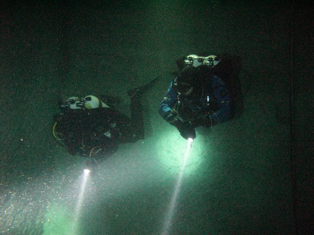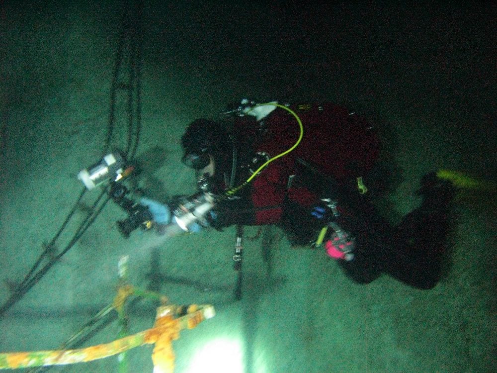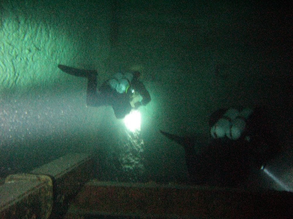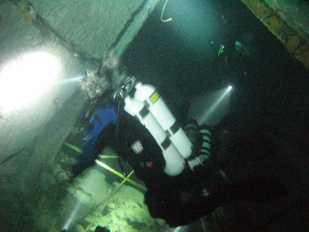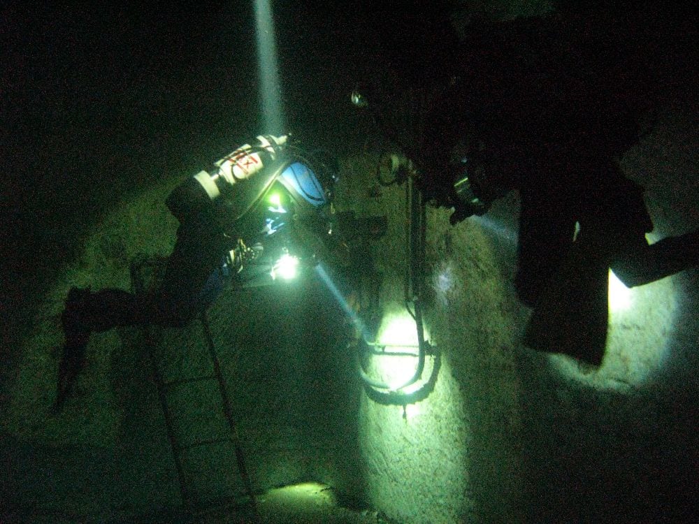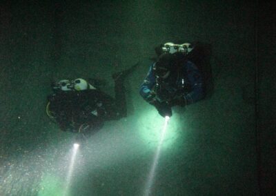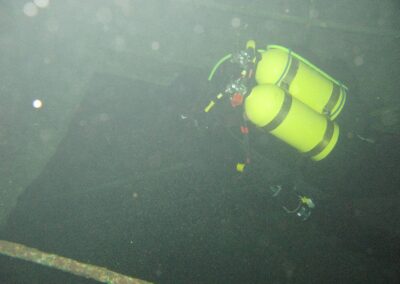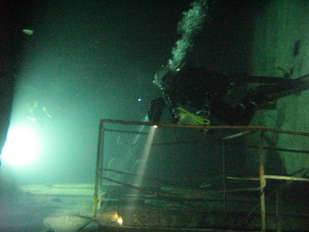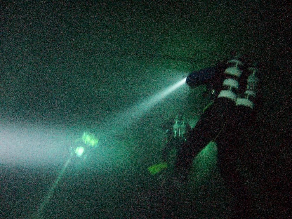 Am Samstag ging’s dann in den 10. Bezirk der 1.8 Mio Stadt in ein seit dem 2. WK stillgelegten Kalkbergwerk (dort wurden Kalkplatten für Häuserfassaden herausgebrochen). Pro Gruppe wurden jeweils 2 TGs an verschiedenen Stellen durchgeführt. Sicht sehr gut (zu beginn). Beim Hinaustauchen konnte man dann sehr praxisnah erleben, was Perkolation in der Höhle bedeutet. TG Dauer jeweils zw. 40 und 45 Minuten, Wassertemperatur zw. 10 und 12 Grad.