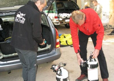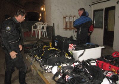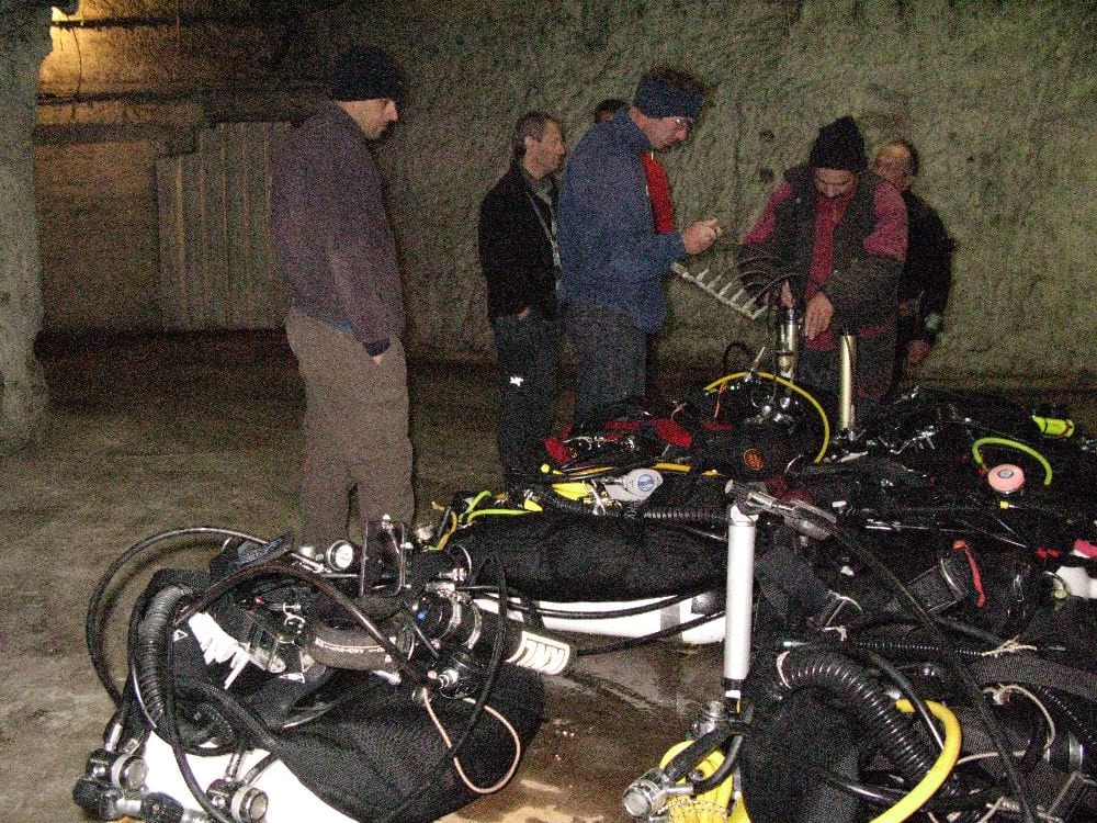 Was weniger gut, zumindest sehr gewöhnungsbedürftig ist: die ungarischen Guides, obwohl modern ausgerüstet und taucherisch sehr gewandt, haben anscheinend noch nicht sehr viel von „westlichen“ Höhlentauch-Sicherheitsstandards gehört. Checks, Safety Drills, Drittelsregel, Notfall-Procedures etc., sind vielleicht zwar bekannt, aber werden schlichtweg negiert. Kurz und gut: jeder ist auf sich alleine gestellt.