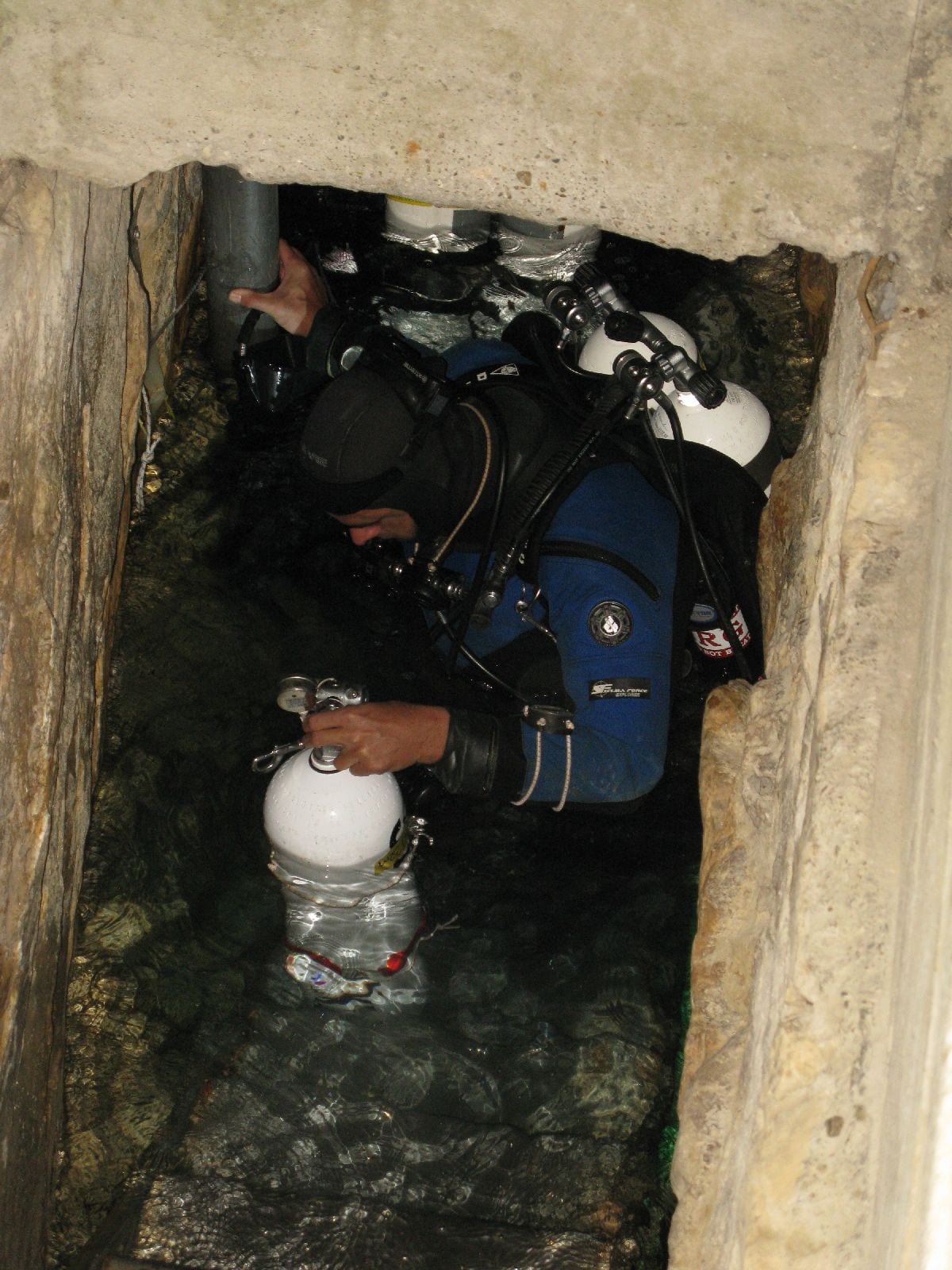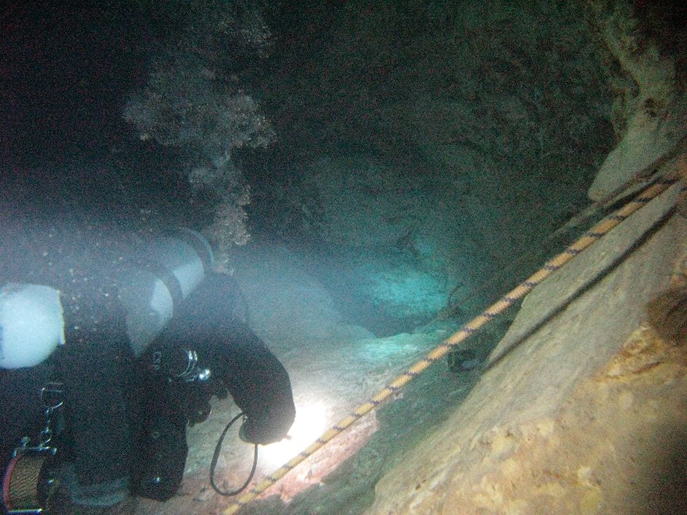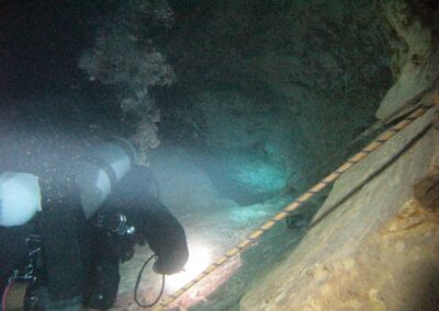 Während in der Mine zumindest ein Höhlenplan aufliegt und man sich gut daran orientieren kann, gibt’s solchen Luxus in der Molnar nicht. Dort sind eher „trust-me dives“ angesagt (also dem Guide völlig vertrauen), die Höhle ähnelt sehr stark den verästelten Systemen in Mexico.