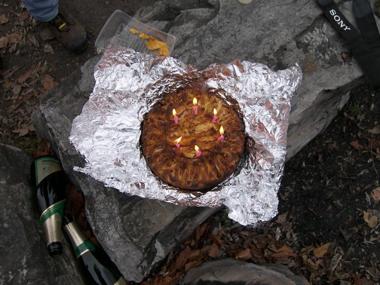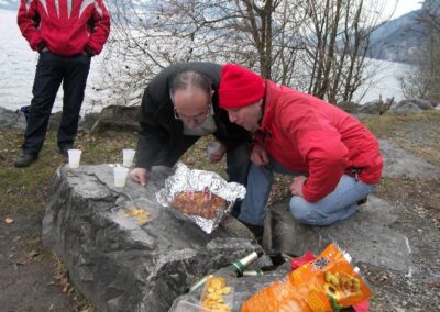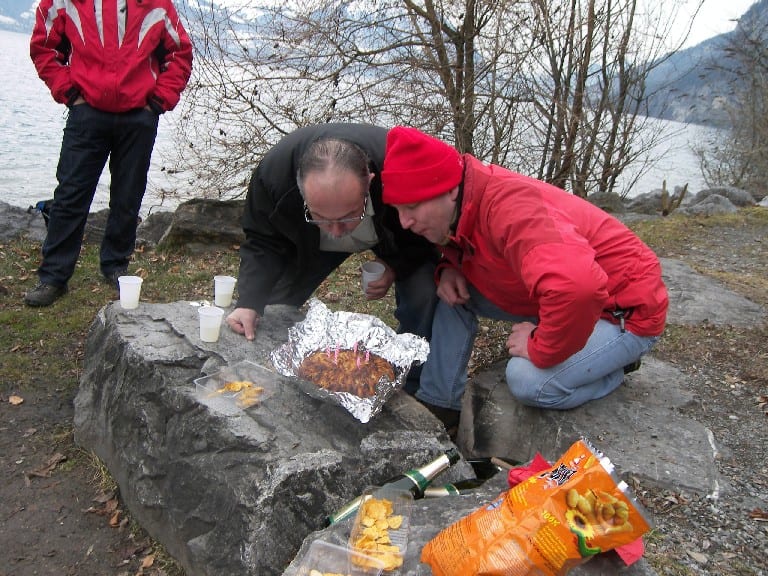 Gleichzeitig konnte man auch noch den Geburtstag von Beat und Yoska feiern, u.a. mit dem bekannt guten Sekt aus Luxemburg. Dazu noch einer von Trudy’s bekannt guten Apfelkuchen, was will man mehr.