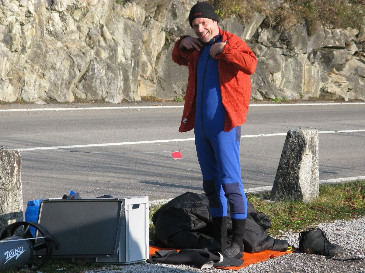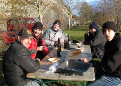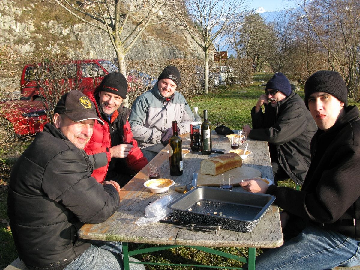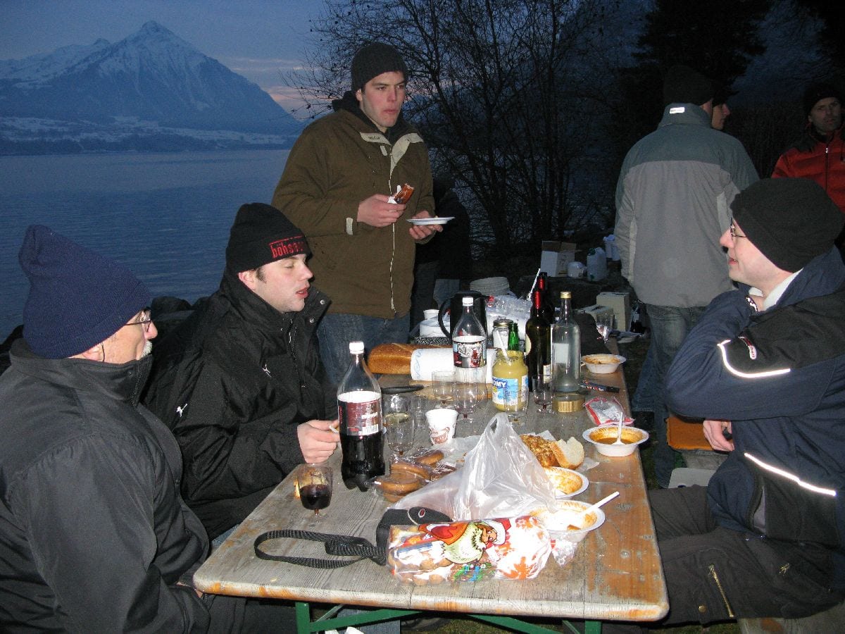 Zum Feiern des Geburtstags unseres Kollegen Dani Lüthi trafen sich am 13. Dezember bei klirrender Kälte, aber strahlend blauem Himmel ein paar Unentwegte am Baetterich.
