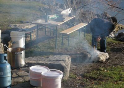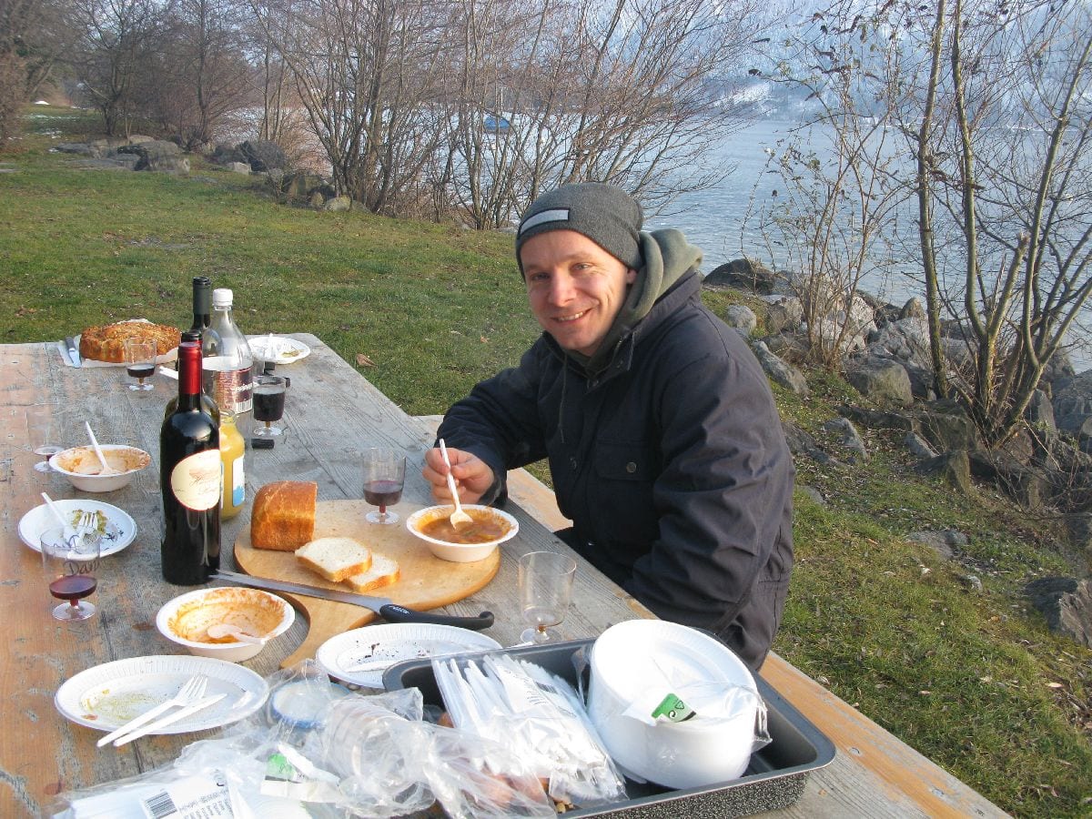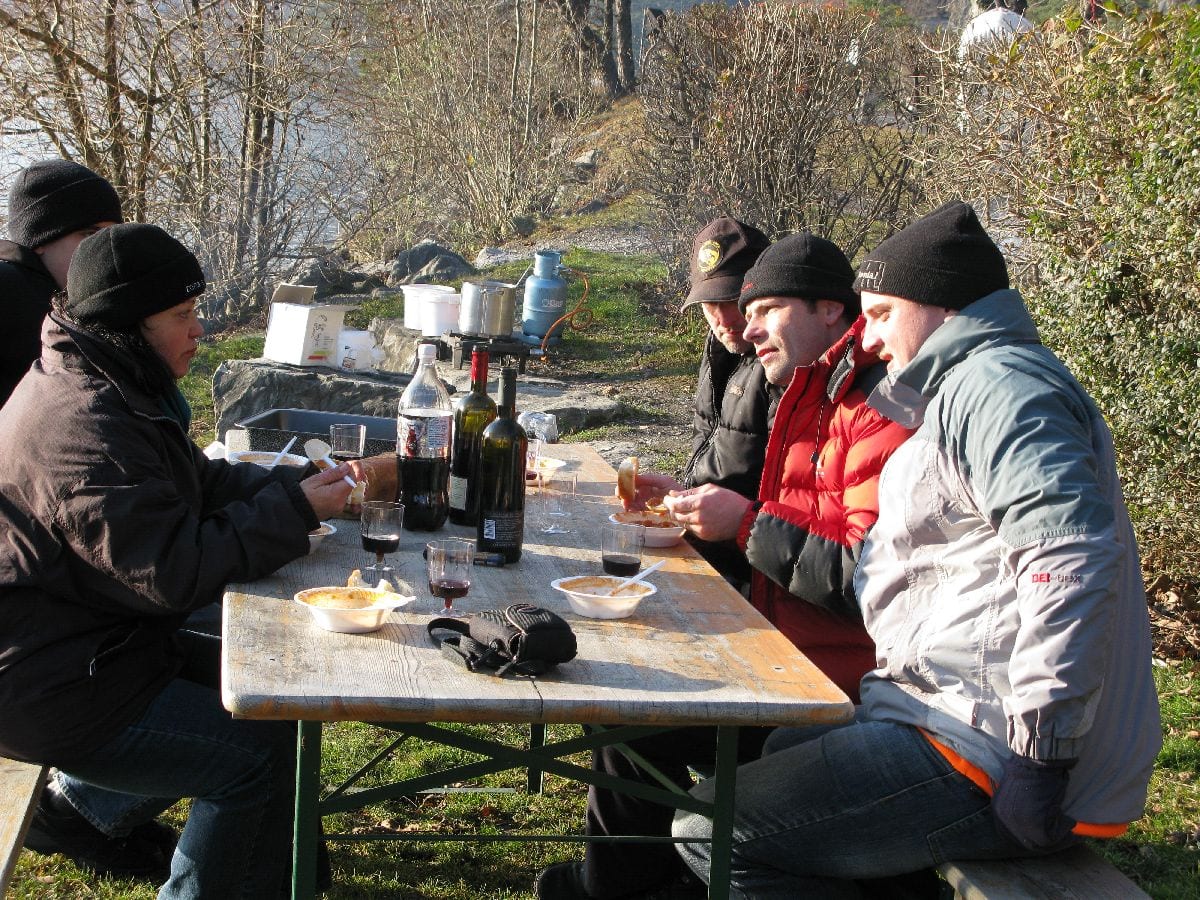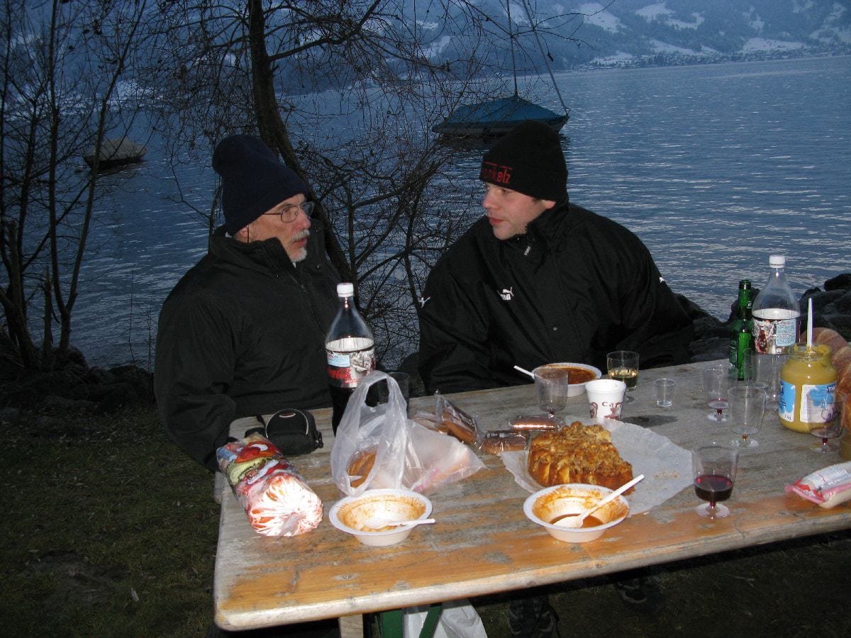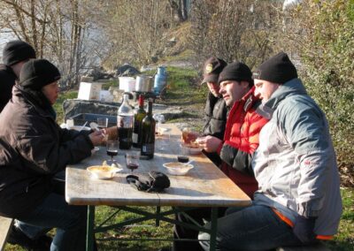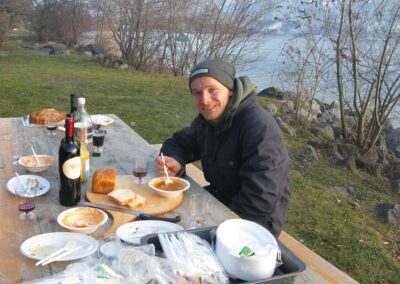 Anschliessend wurde mit einer währschaften Suppe, den unbedingt notwendigen Zutaten wie Brot, Wurst und Vino Dani’s Geburtstag gehörig gefeiert. Sogar ein Kuchen zum Dessert durfte nicht fehlen.